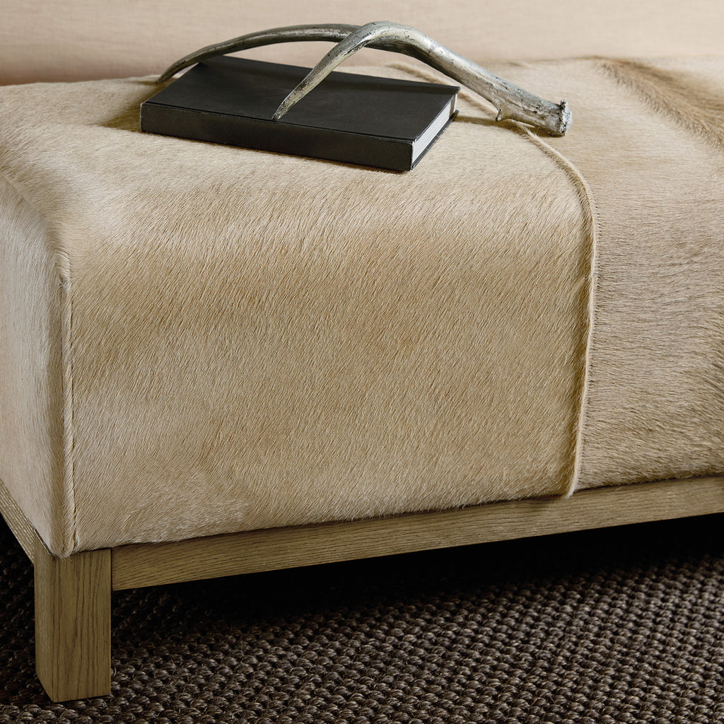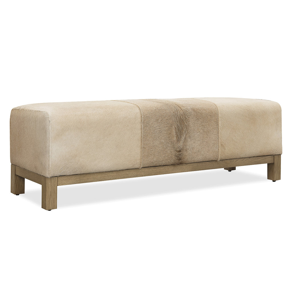 With a tactile hair-on-hide leather seat and warm oak wood base, the Mélange Holy Cow Bench brings organic sophistication to any room. Use at the end of a bed or in a hallway to introduce rich material contrast. Come closer to Melange, and you will discover something unexpected, something far more than an accent furniture collection offering a multitude of finishes. An eclectic blending of colors, textures and materials in a vibrant collection of one-of-a-kind artistic pieces, Melange is meant to inspire you and fuel an experience of self-discovery. Melange can provide that spark needed to begin the transformation of a room and a renaissance in your life. Each piece of Melange has its own story. The designs are versatile and timeless, easily transcending from one life stage to the next, from home to home and generation to generation.