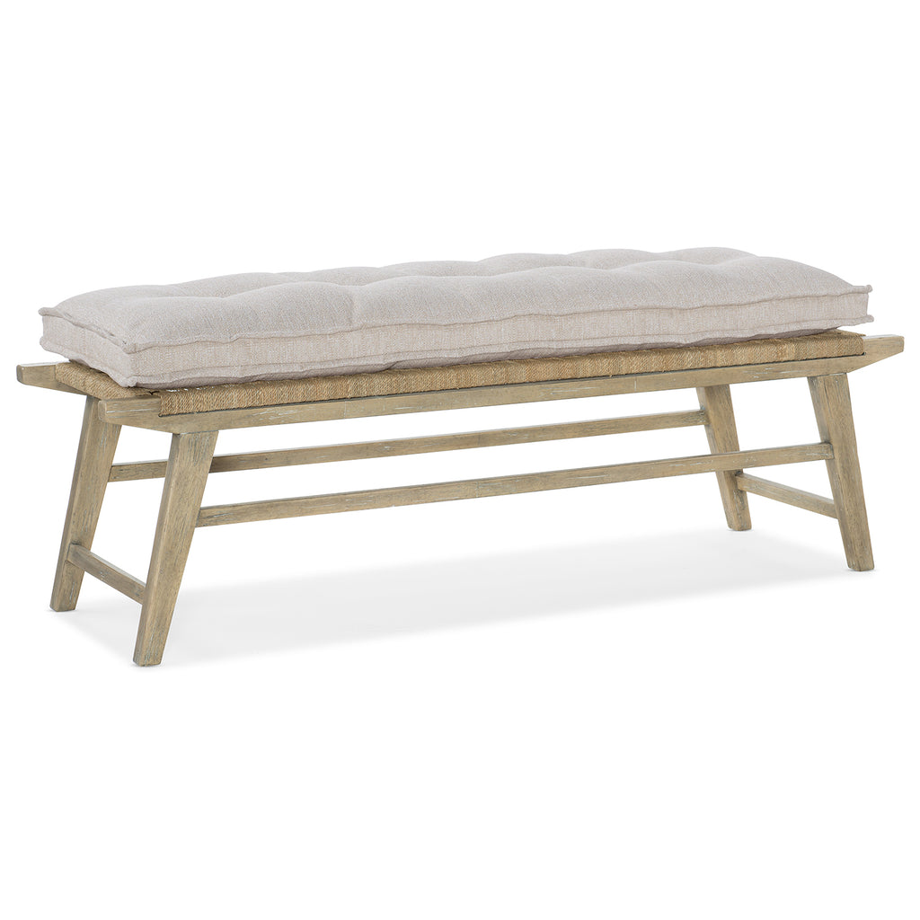 A medley of natural materials with a vintage farmhouse appeal, the Surfrider Bed Bench is crafted of wood with a woven rope seat and loose fabric seat cushion covered in the Zuri Cream performance fabric for carefree maintenance. The light and airy finish is the natural-colored Driftwood with distressing including sandblasting and bleaching.