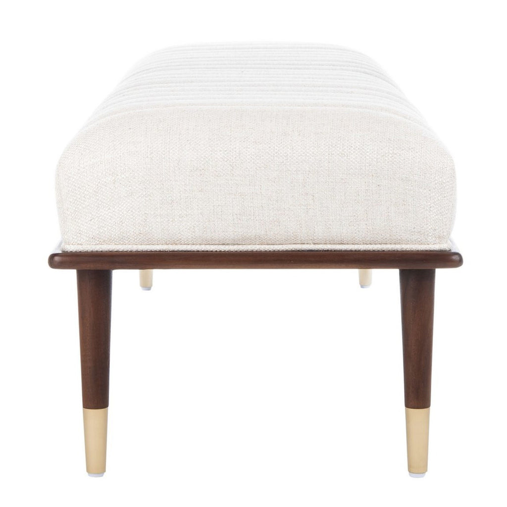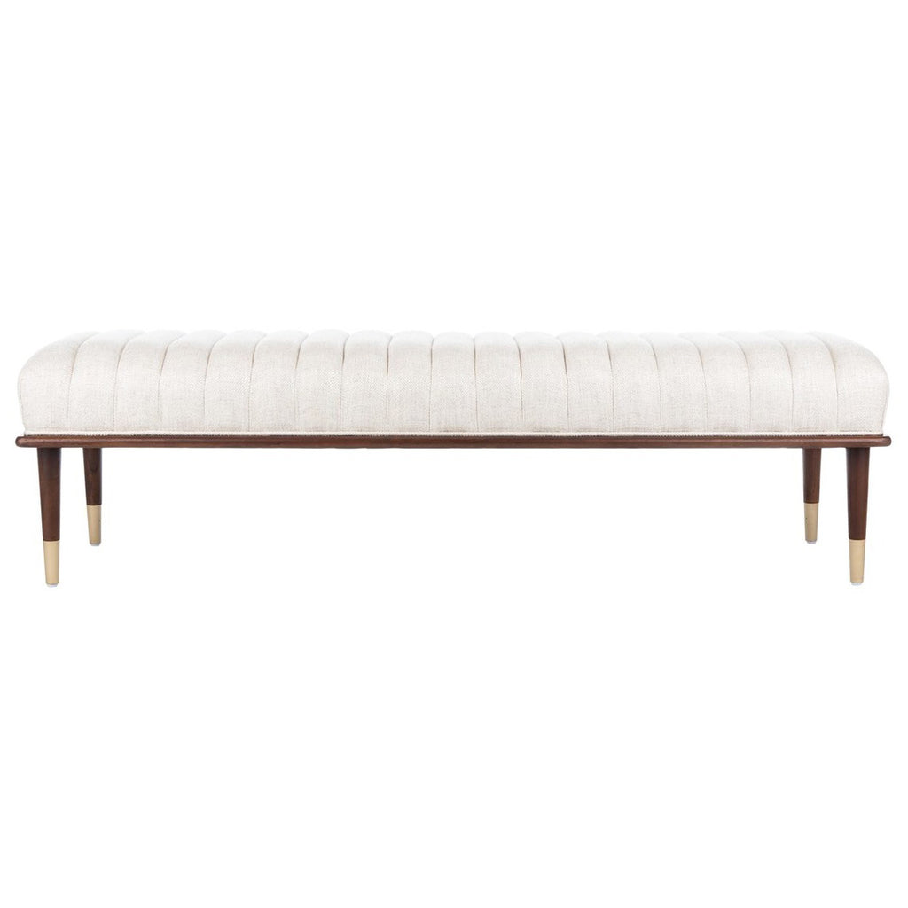 Posh and polished, this contemporary mid-century bench is a beauty for the tasteful interior. Ideal as impromptu seating or a tray of rosé, it’s designed with luxurious Cream linen upholstery and gorgeous natural wood with warm Brass capped legs.