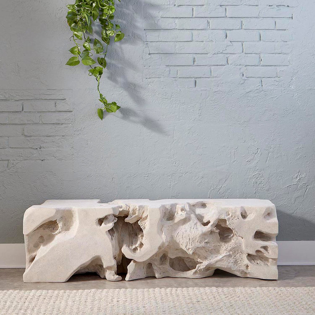 The Freeform Bench is made of composite in a polished bronze finish. Cast from a piece of wood this tree-trunk bench personifies modern organic. Just imagine how perfectly it will fit into the décor of a ski chalet or a homey lake cottage!