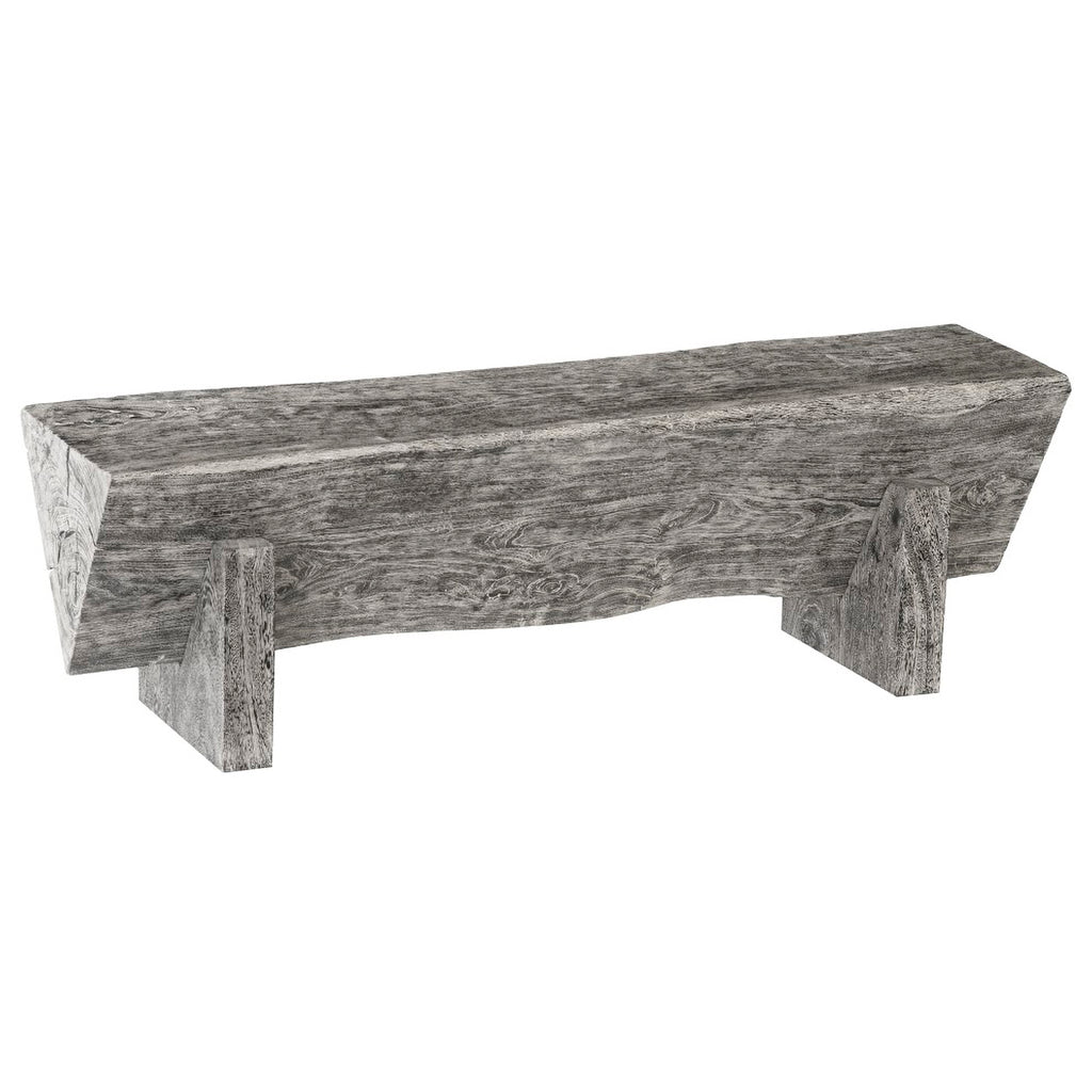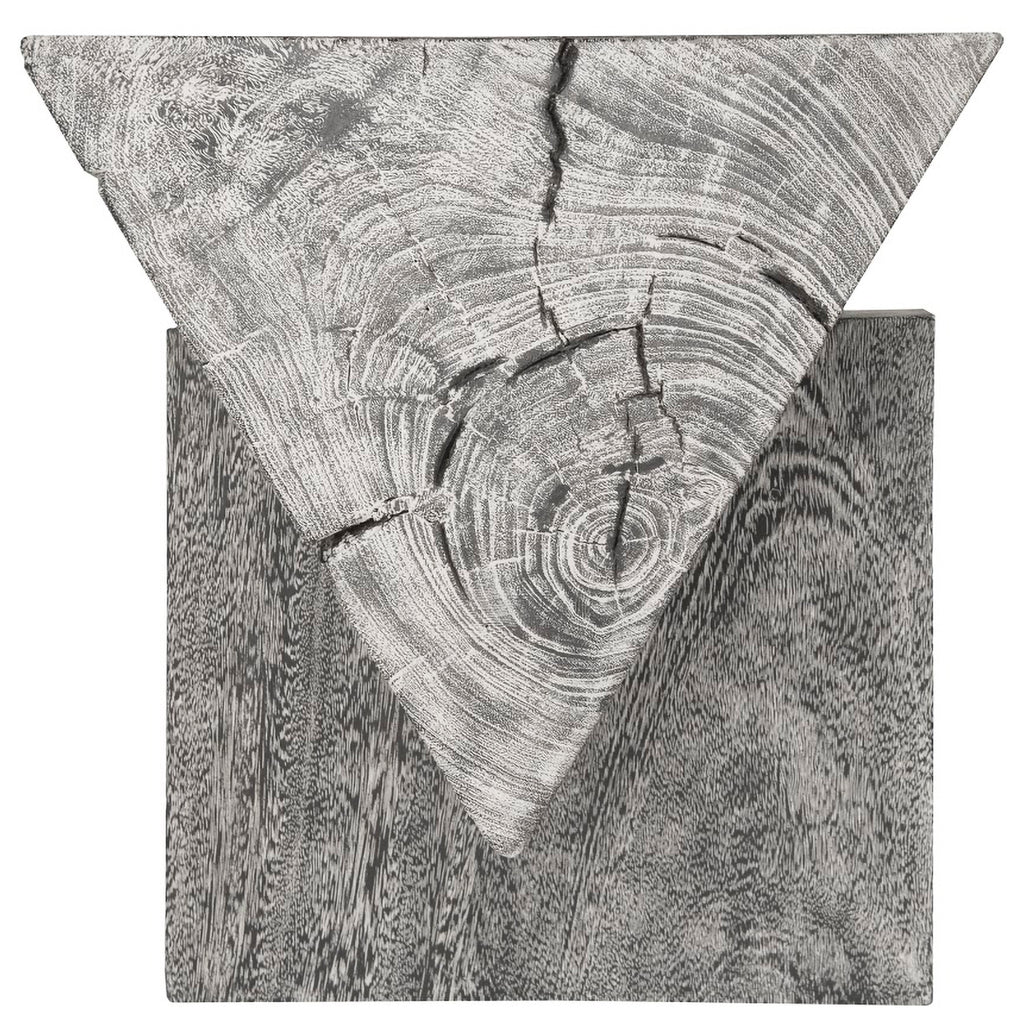 Crafted from solid Chamcha wood, the Triangle Bench rests sturdily on two wood legs without the need for any hardware. Available in Natural and Grey Stone.
