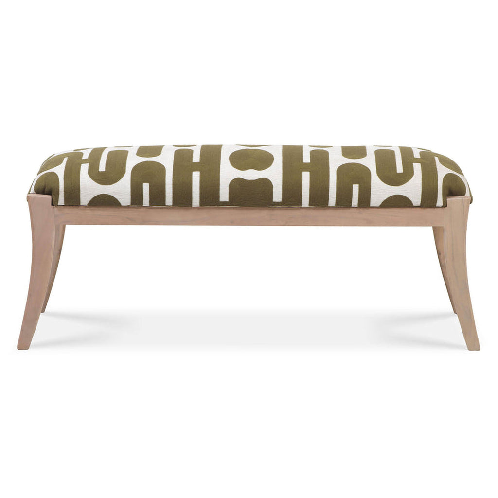 Discover the perfect blend of comfort and style with the Arielle Olive & White Embroidered Bench. Wrapped in textured natural fibers of cotton and jute, this bench boasts a solid acacia frame for enduring durability. The oversized tribal and bohemian-inspired embroidery infuses any room with a touch of artisanal charm.