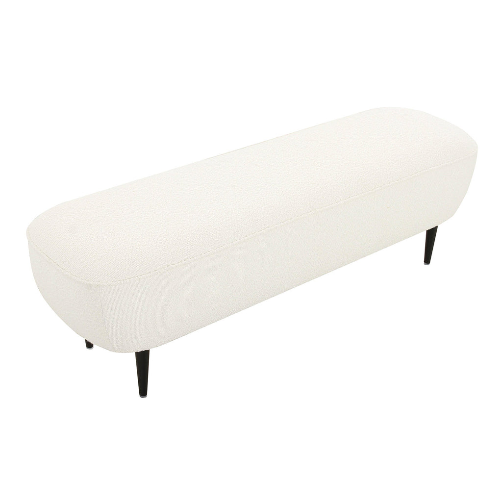 Perfect for entryways, living rooms, or bedrooms, the Denise Cream Boucle Bench offers versatile functionality! The cream boucle fabric is timeless and elevates your space. With a sturdy wood frame and black iron legs, this bench is made to last. The modern and sleek style allows this bench to be added to any style in your home.