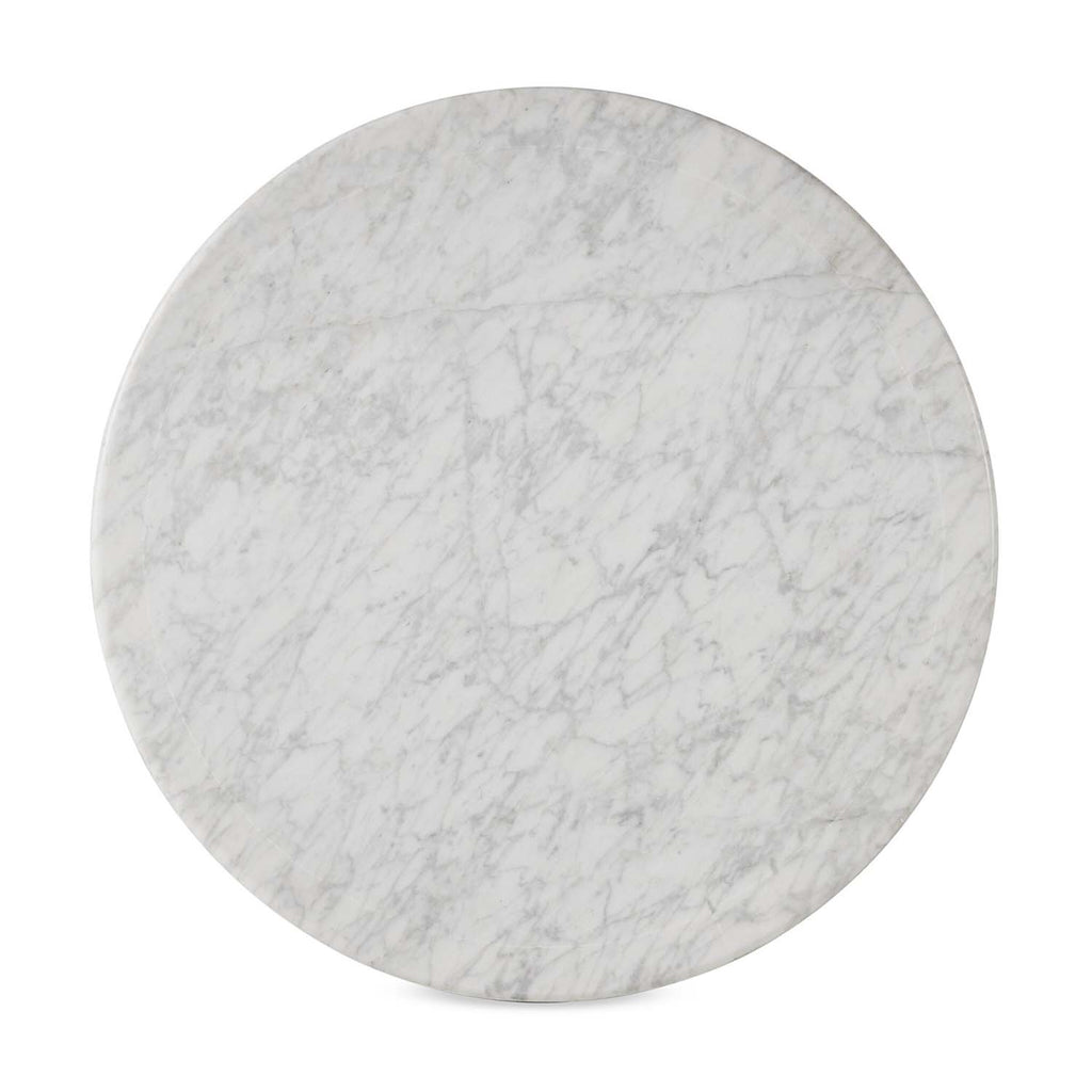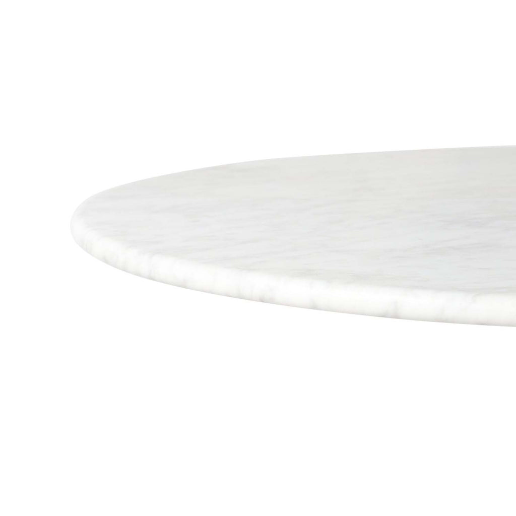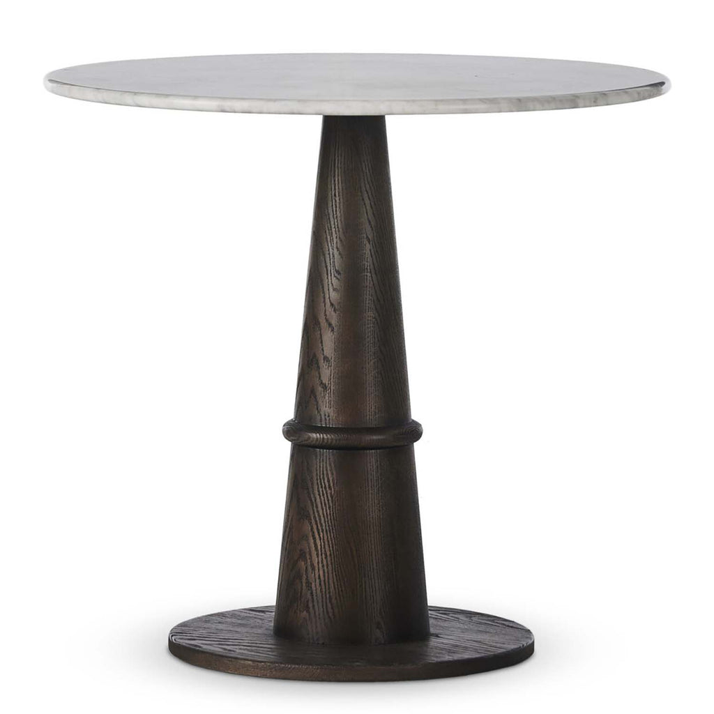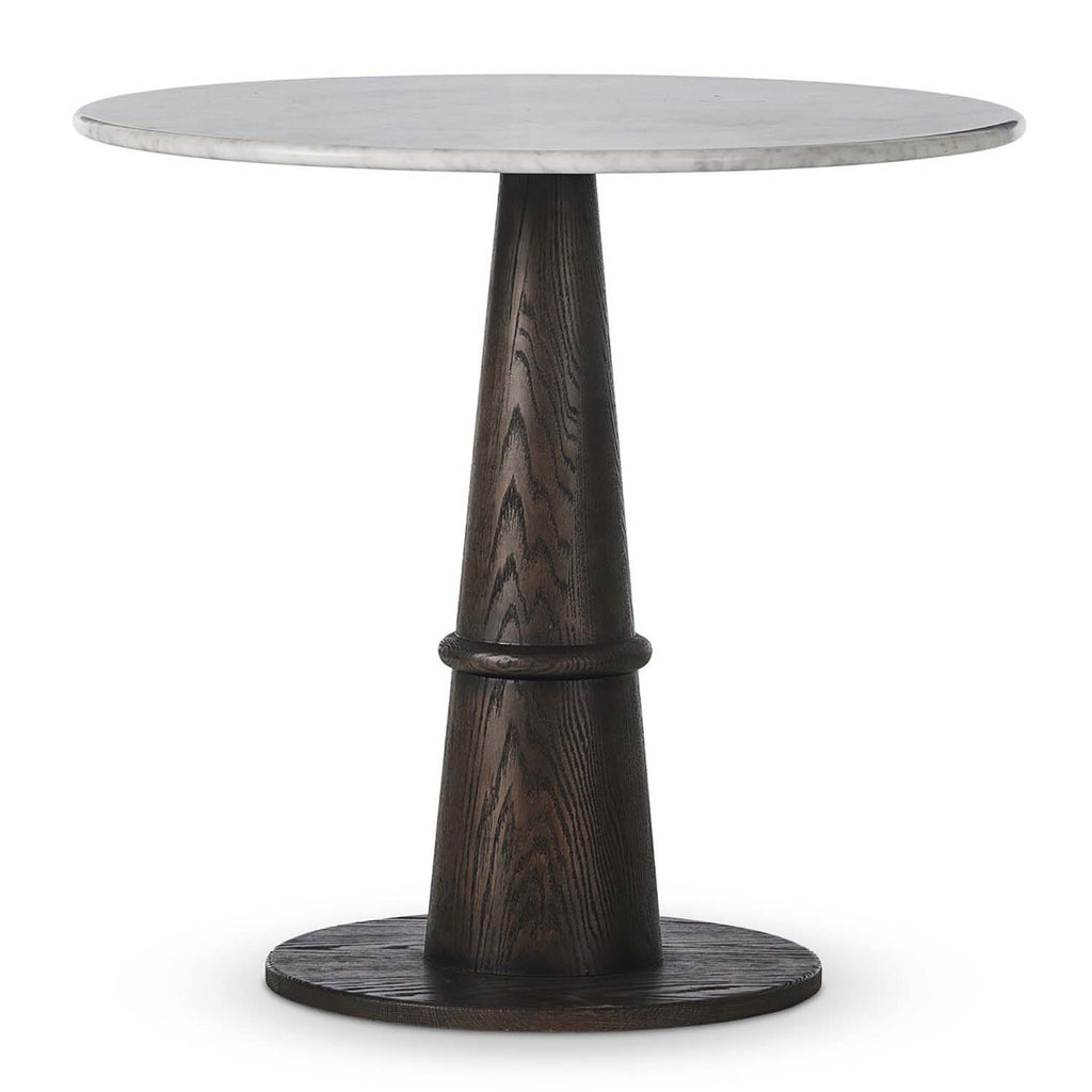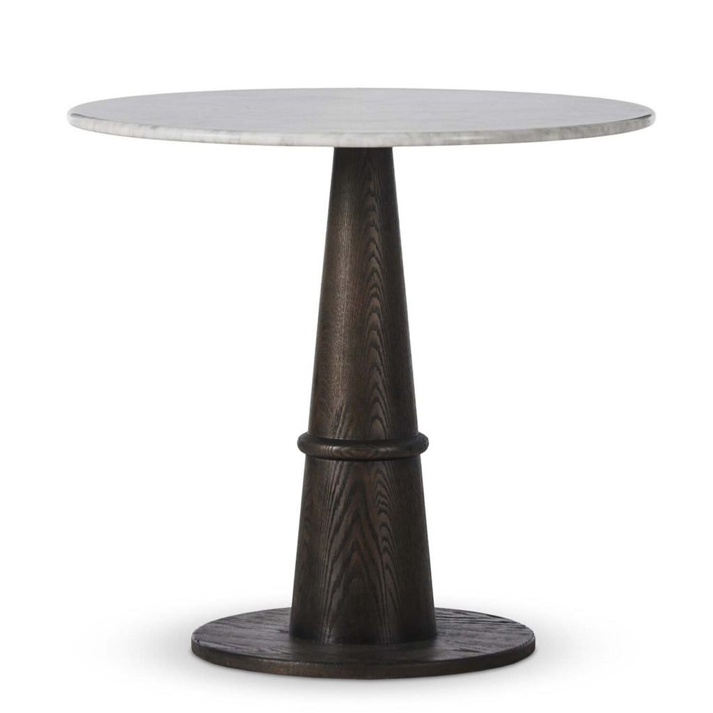 For a fresh bistro-style take on traditional tulip shaping, a solid oak base pairs with a solid marble tabletop.