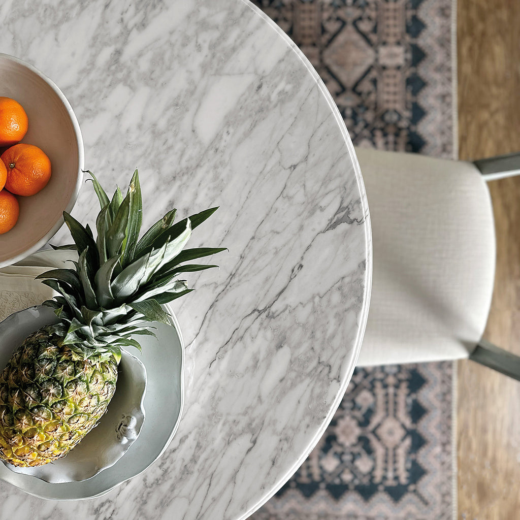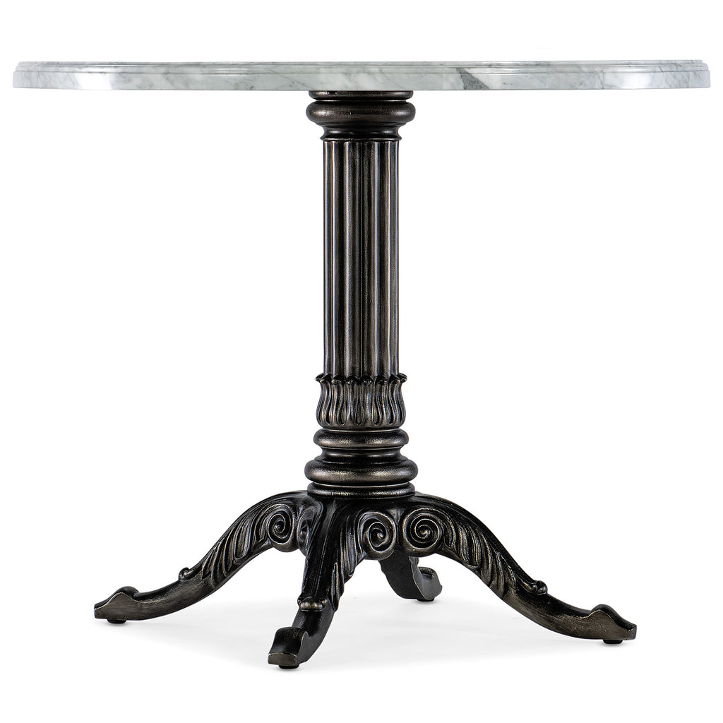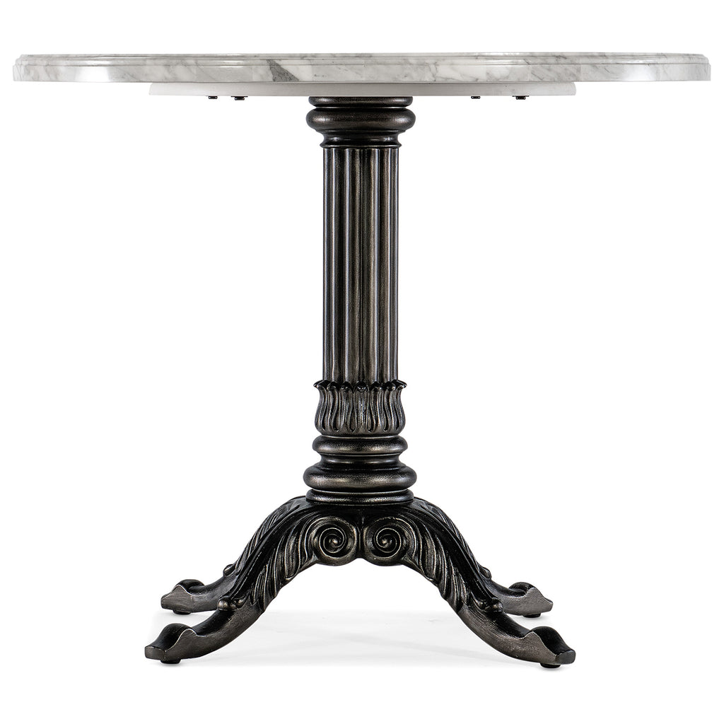 Inspired by timeless Paris bistro tables, the Charleston table is a classic design with a Veneered Carrara Stone top and a carved pedestal base that takes its’ inspiration from the decorative iron gates that adorn the stately properties in Charleston. Will accommodate up to 4 with coordinating chairs.