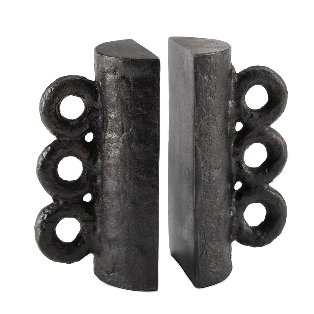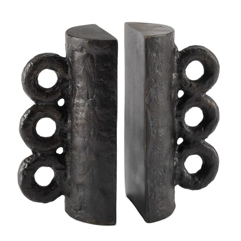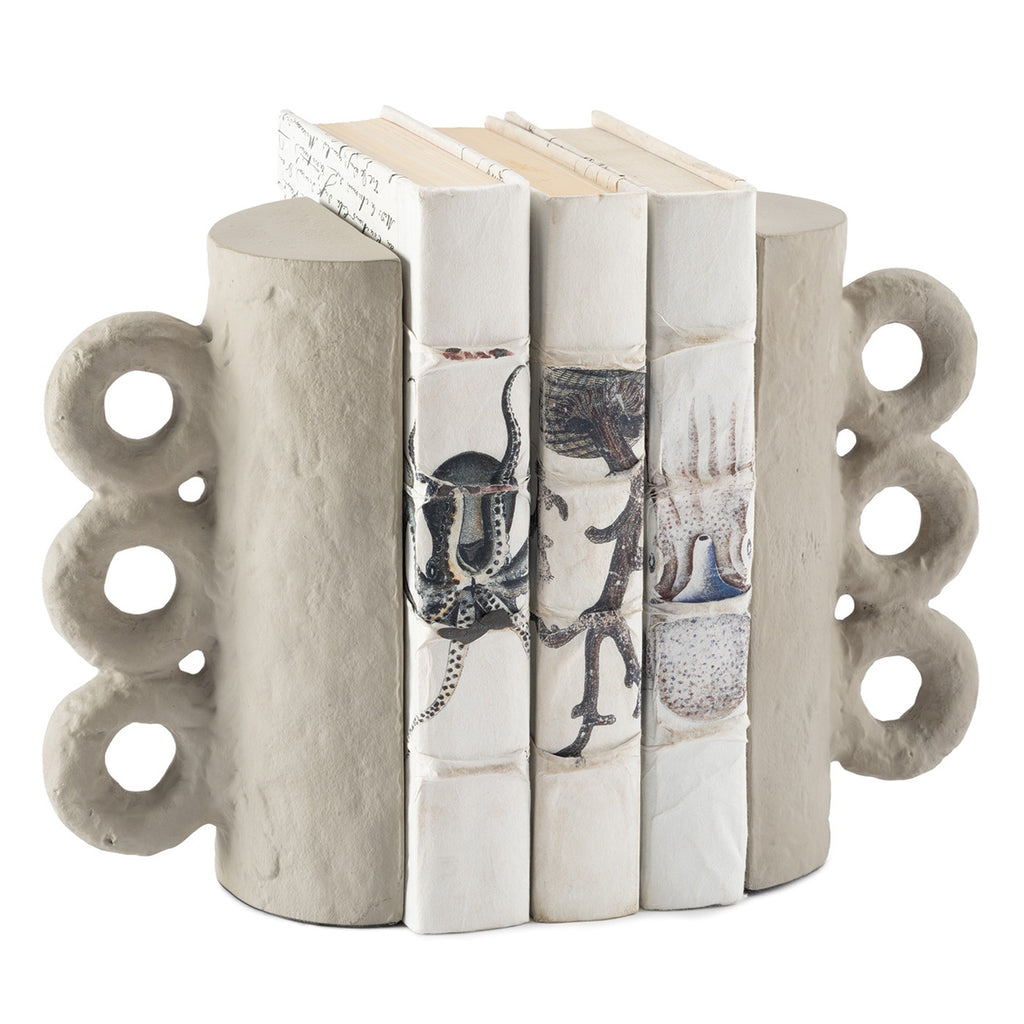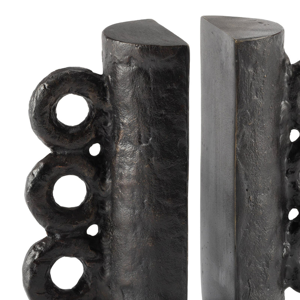 Elevate your decor with the Chandra Bookends, featuring a unique, textured surface inspired by traditional paper mache techniques. Finished in a refined matte brown/grey, these bookends highlight the beauty of handcrafted design. Their artisanal charm and natural elegance make them a perfect addition to any bookshelf or desk, adding a touch of Boho-chic style and sophistication to your eclectic living space.