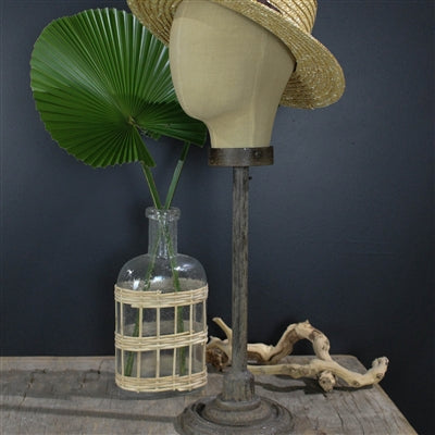 Recycled glass bottles with an organic folded neck are wrapped in rattan giving these unique vessels added texture and dimension. Style alone or add floral for an even warmer, natural look.