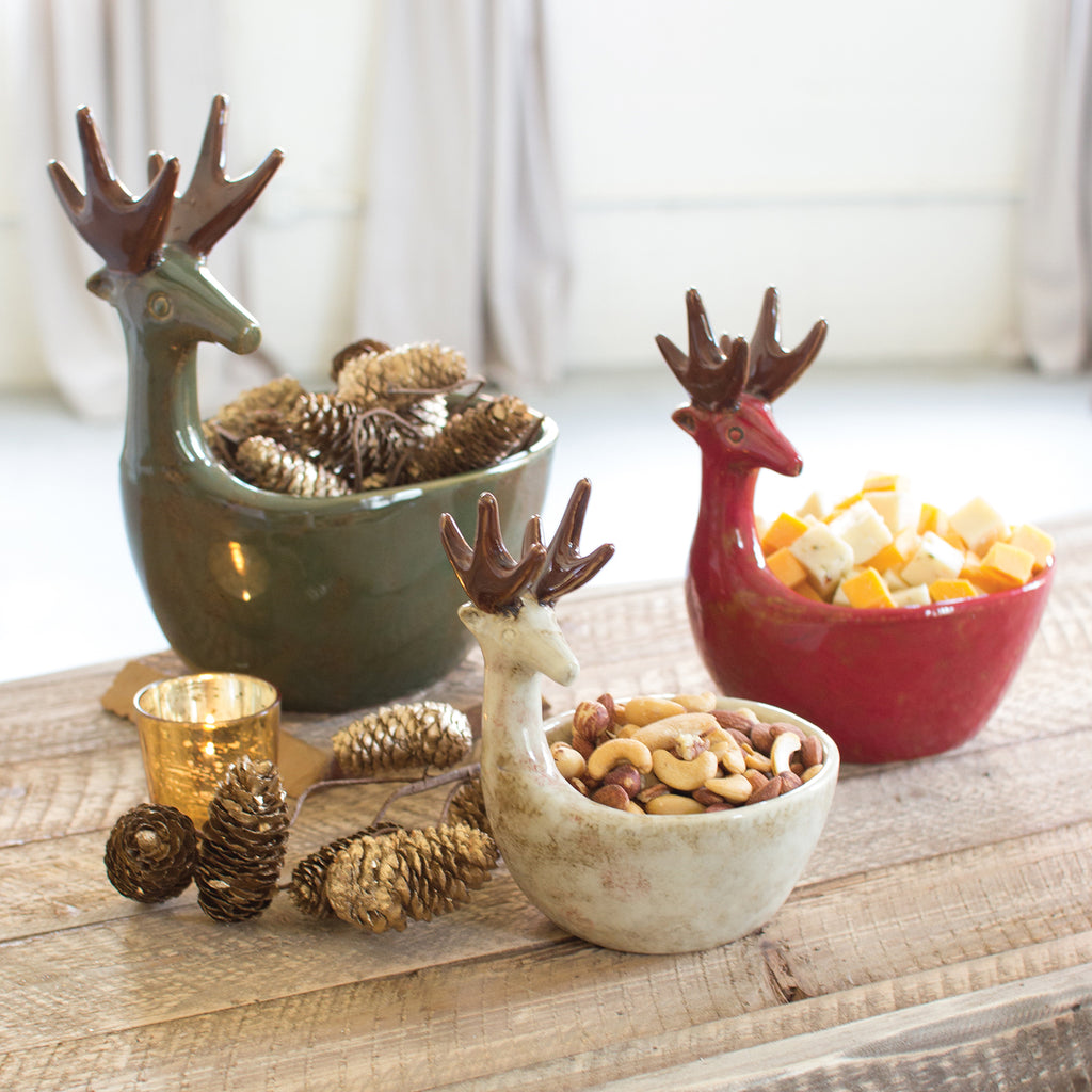 This set of deer bowls make the perfect Christmas statement. Use them as snack bowls for a party or fill them with pinecones and other holiday trinkets for show.