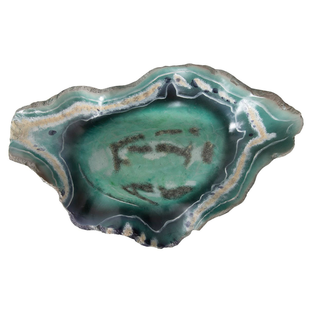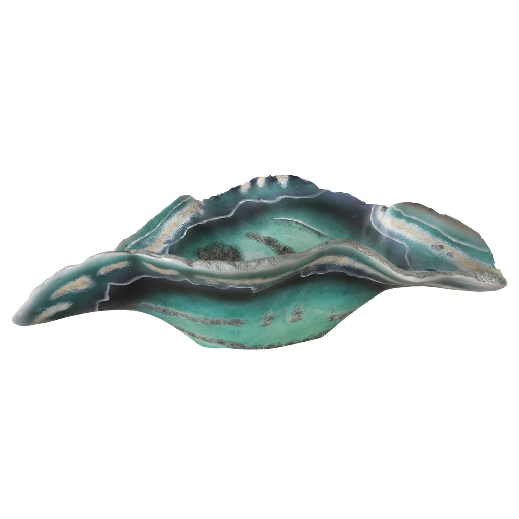 The curvaceous, organically shaped decorative bowl has been hand-painted with a pattern that mimics the veining found in real fluorite.