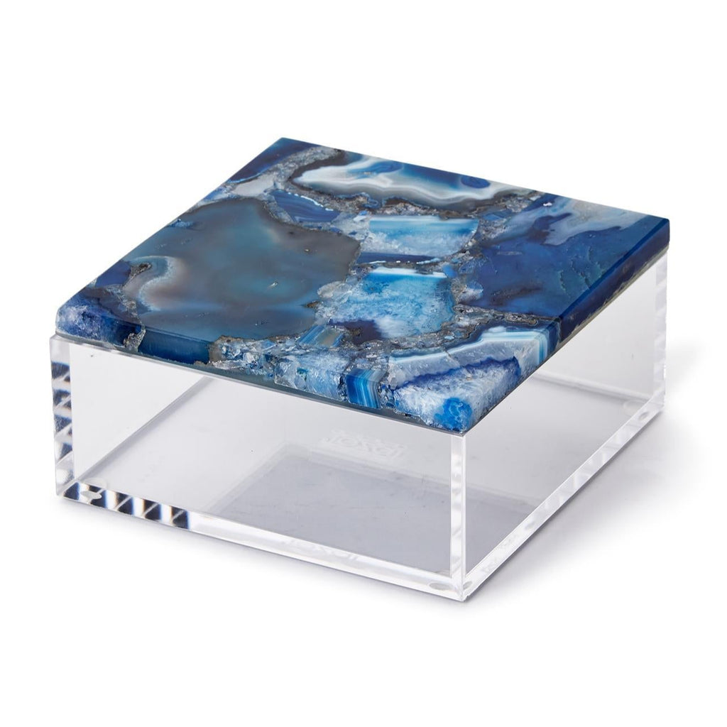 Elevate your home design with the exquisite sophistication of this genuine Amazonite covered box. This lustrous material exudes an innate beauty that transcends ordinary home accessories. Each acrylic base is covered with an Amazonite stone top offering a textured and enchanting addition to any space. Embrace the uniqueness of Amazonite, as each piece showcases its distinct variances in color and pattern, ensuring that no two are exactly alike.