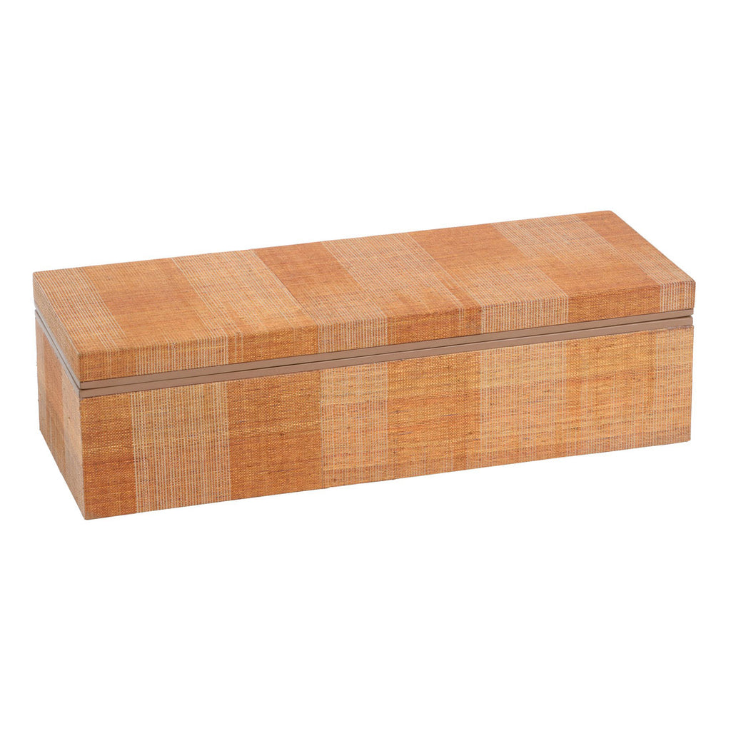This Chelsea House box makes a stylish piece of décor atop a mantle or side table. Simple and chic, this gorgeous accent delights with modern glamor. The transitional hand woven Chelsea House Wadley abaca wrapped box features hinged lid and felt lined interior.