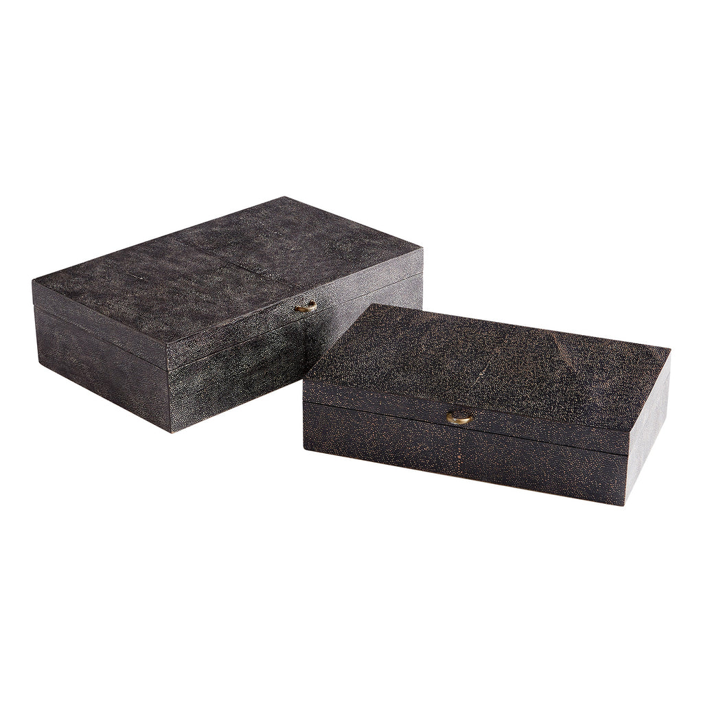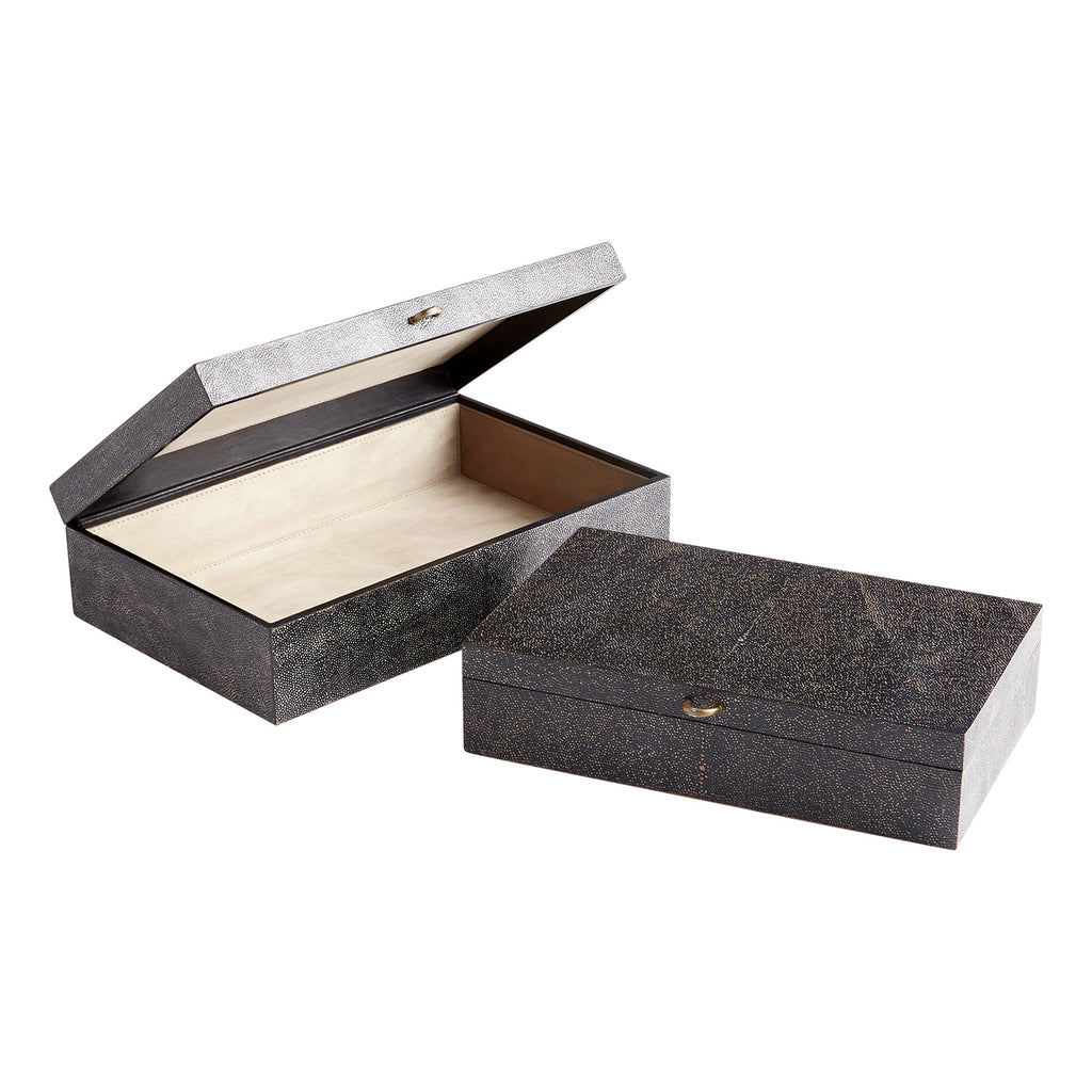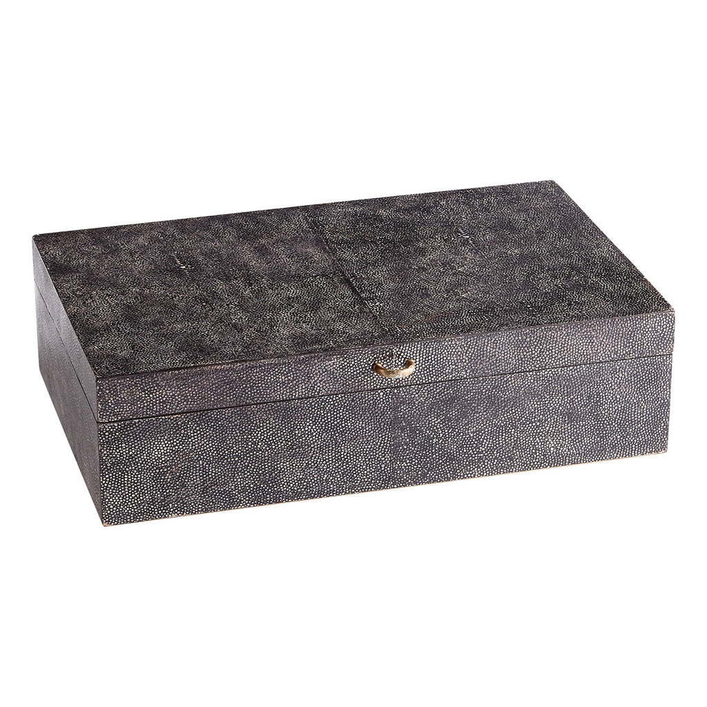 Store your jewelry, small electronics, trinkets, or any other personal items in the Cyan Design Puma container. Organic-Boho loveliness graces this classic leather container. A sleek, textured Grey finish adorns the exterior of this decorative box. This tabletop accessory is available in a small and large option for added versatility. Display on a bedroom dresser, powder room counter, or sitting room coffee table to add a natural elegance to your ensemble.