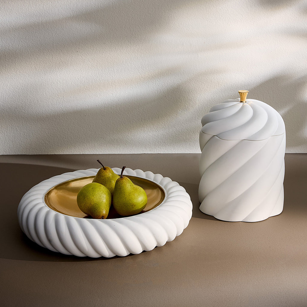 A little nautical, a lot glamorous. Our Geneva Box features a sculptural wound rope crafted from high-fired unglazed porcelain and a removable lid topped with an extra luxe touch—a glimmering gold pull. Fabulous and functional in both blanc or colorful tablescapes.