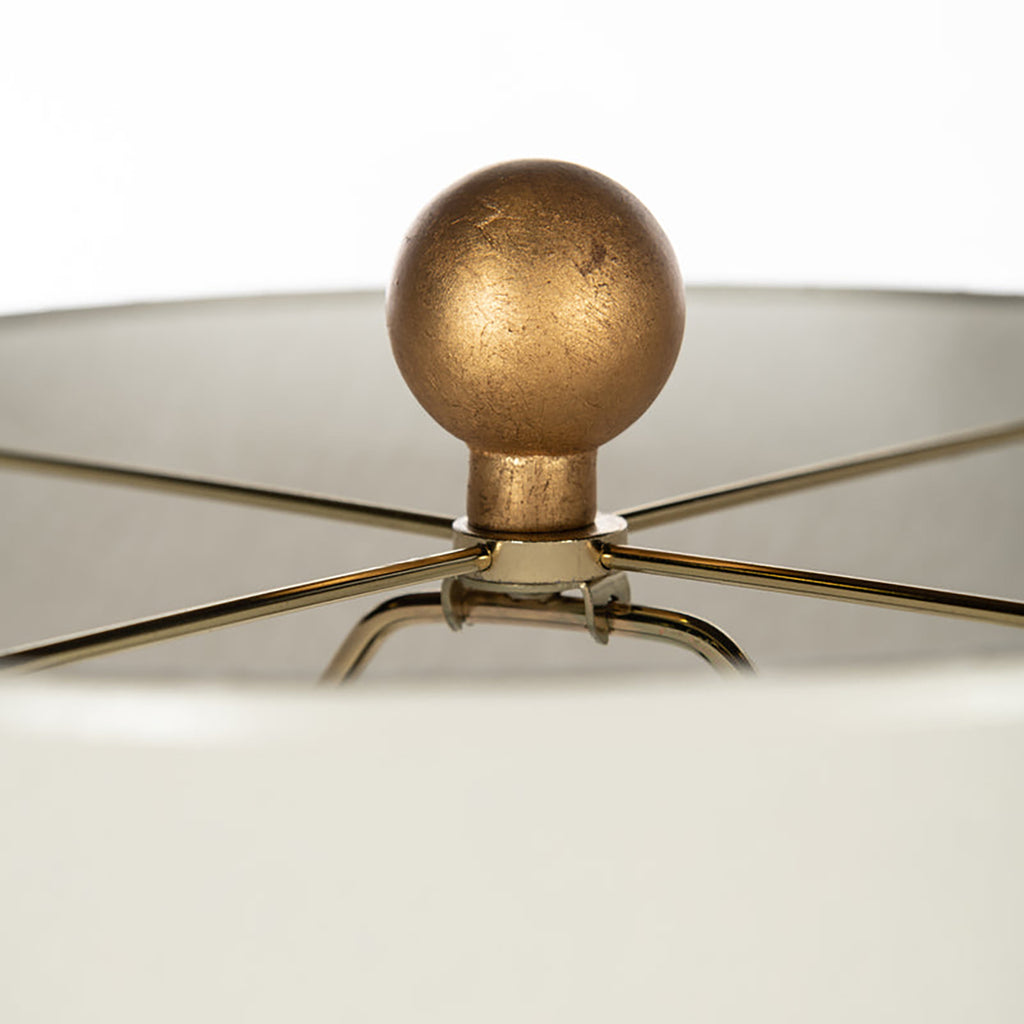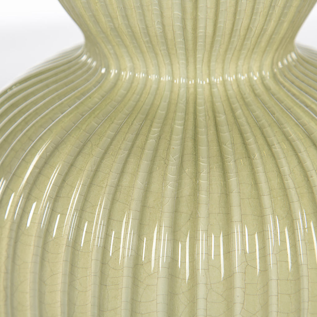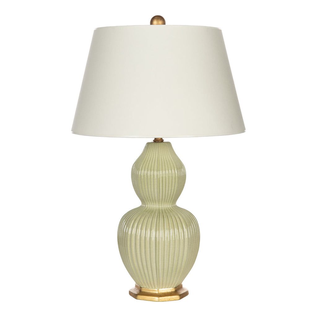 Put the perfect finishing touch to any living space with this soft celedon colored, fluted urn shaped Paragon lamp. The body stands on a gold leaf hex base accented by a gold ball finial. A cream linen empire shade tops this striking three way lamp for customizing your lighting in style.