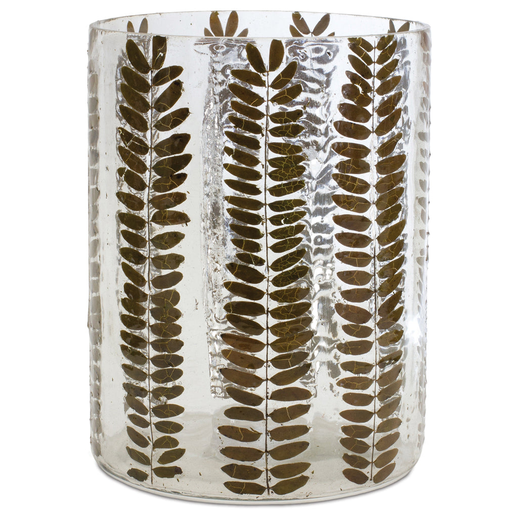 Add a natural element to your home with this beautiful Dried Foliage Glass Candle Holder. Measuring 8" tall, this piece is a great fit for your mid-century modern or farmhouse style of decor. The trendy dried rowan leaf embedded in a delicate wavy glass vase is the perfect combination to create a stunning display. The quality glass composition is sure to endure for seasons to come. Illuminate the piece by adding a real wax or LED candle to the vase. Candle sold separately, this piece best fits a 4-5" pillar candle.