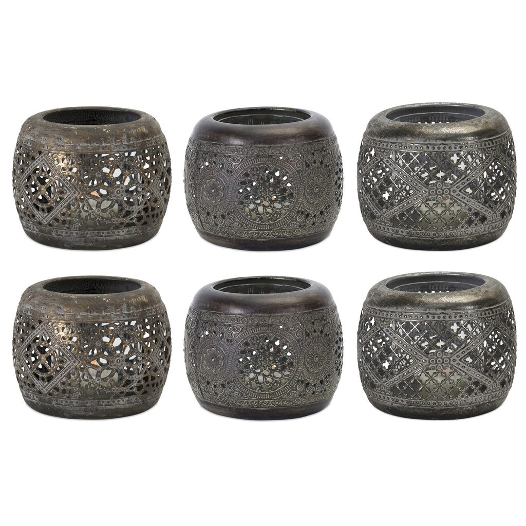 Add a zen touch to your home with this set of beautiful Metal Votive Holders. Featuring three assorted designs and six total candle holders, the ornate cut-out deisgns paired with the bronze metal finish is the perfect combination to create a stunning piece. Illuminate the set with real wax or LED candles. Candles sold separately.