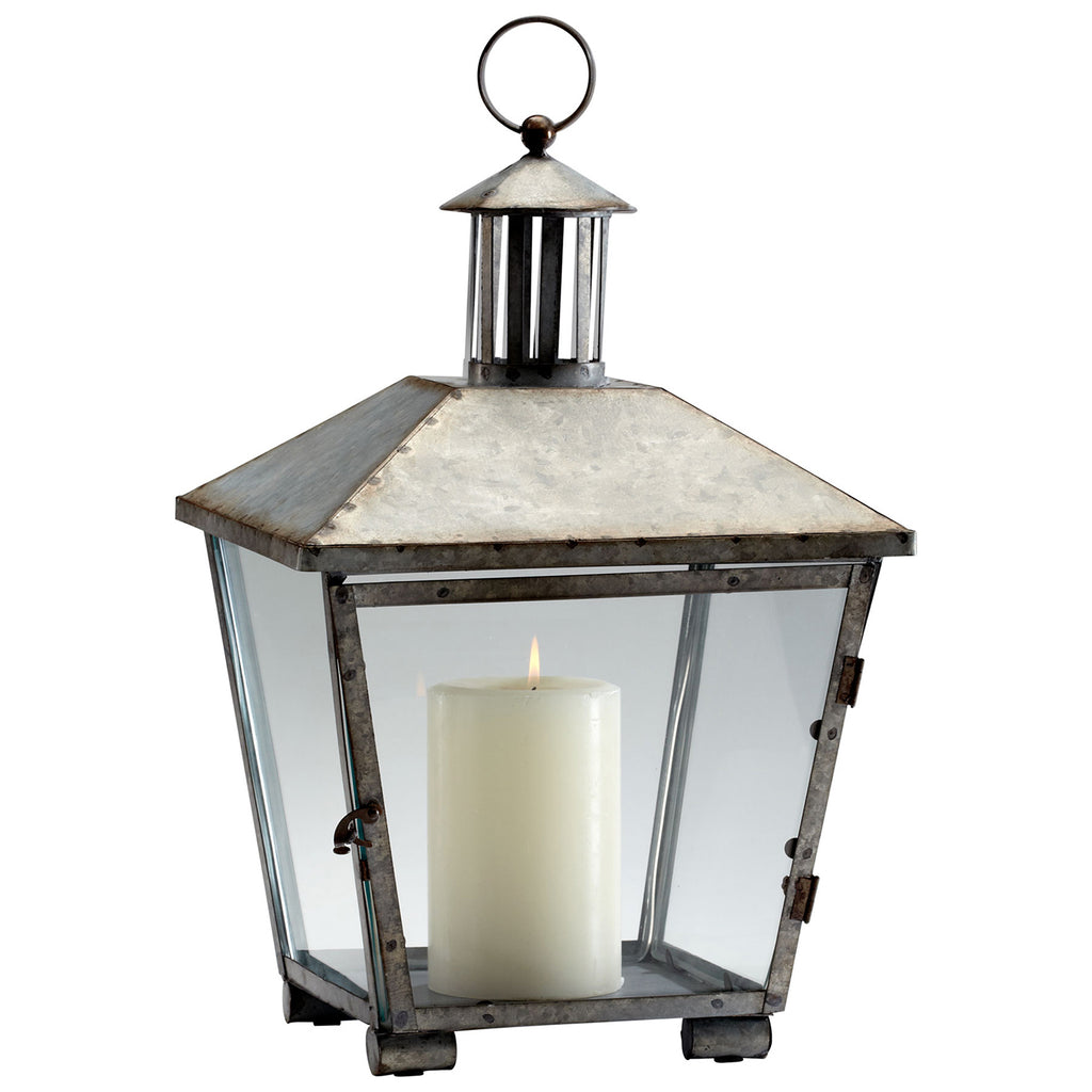 Picnic casual meets traditional charm in this beautiful lantern candleholder. Perfect in series on a buffet or decorating a side table, the lantern boasts protective glass walls with an iron framing in a rustic finish.