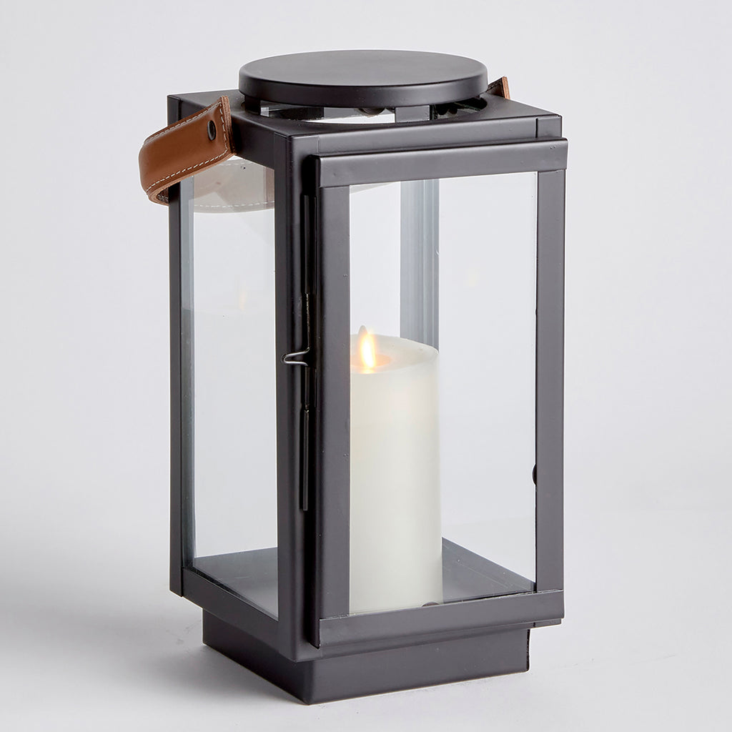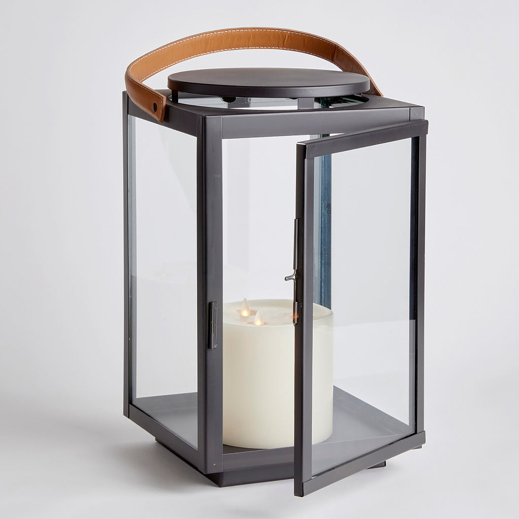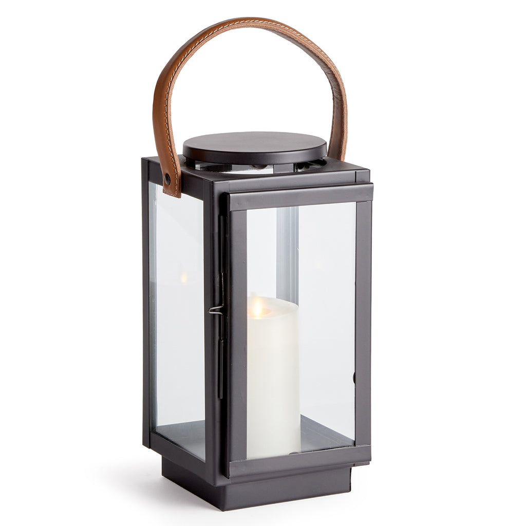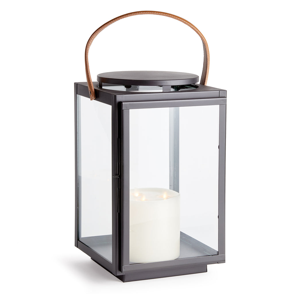 Featuring a real leather handle with tailored stitching, this well-scaled lantern is a mi x of traditional and modern aesthetics. A beautiful accent for entryway, living room or study.