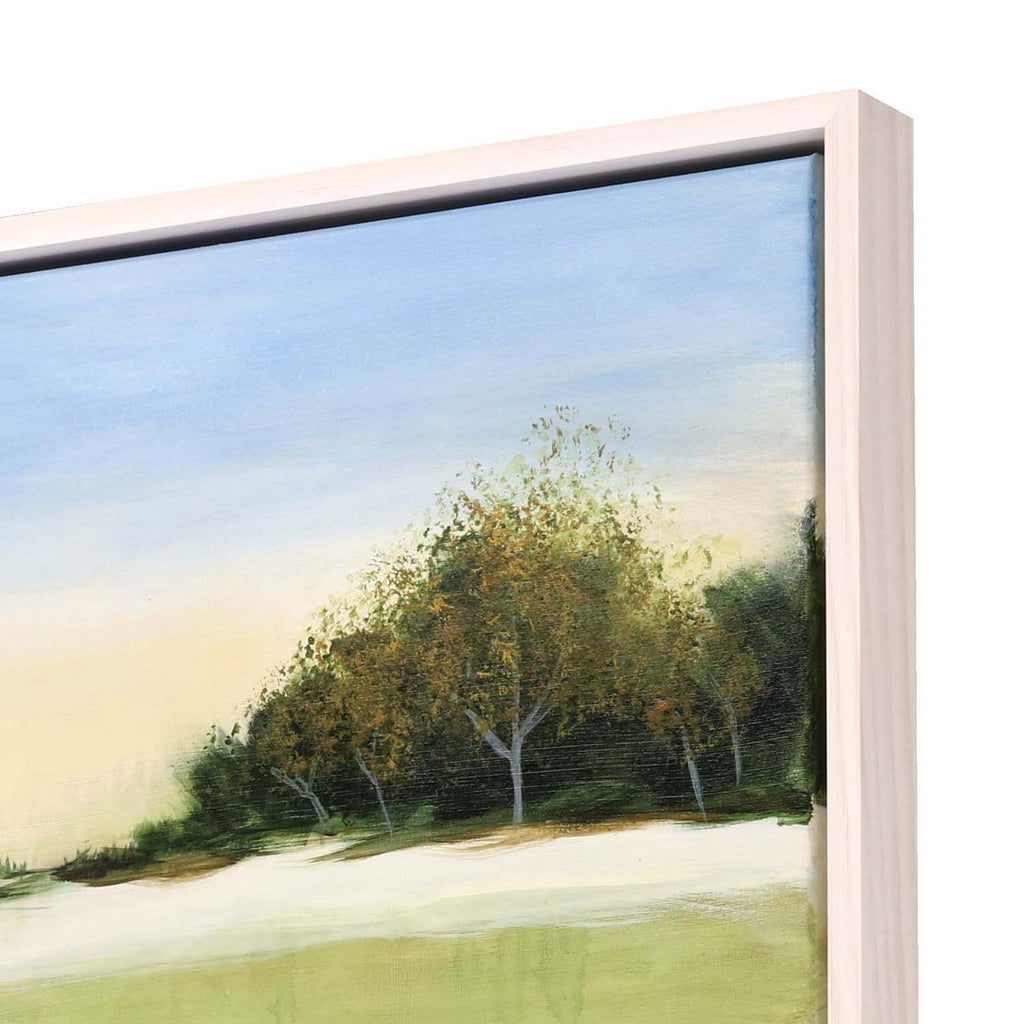 Exclusive hand painted canvas. Mounted in a whitewash wood floater frame.
