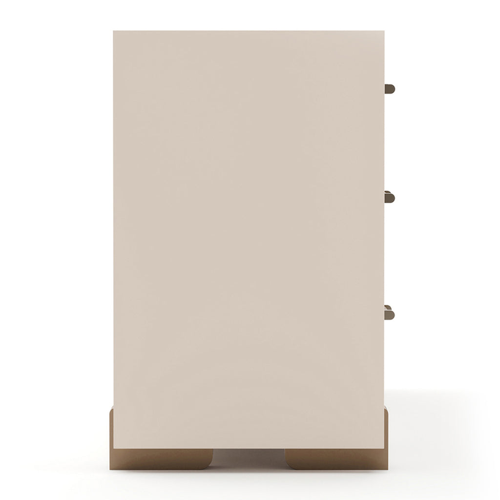 Embrace refined simplicity with the Counter Balance Dresser. Accentuated by a sophisticated Smoked Bronze glass top and finished in luscious Chocolate Koto, Cloud, and Brushed Gold, it adds graceful storage and sophisticated style.