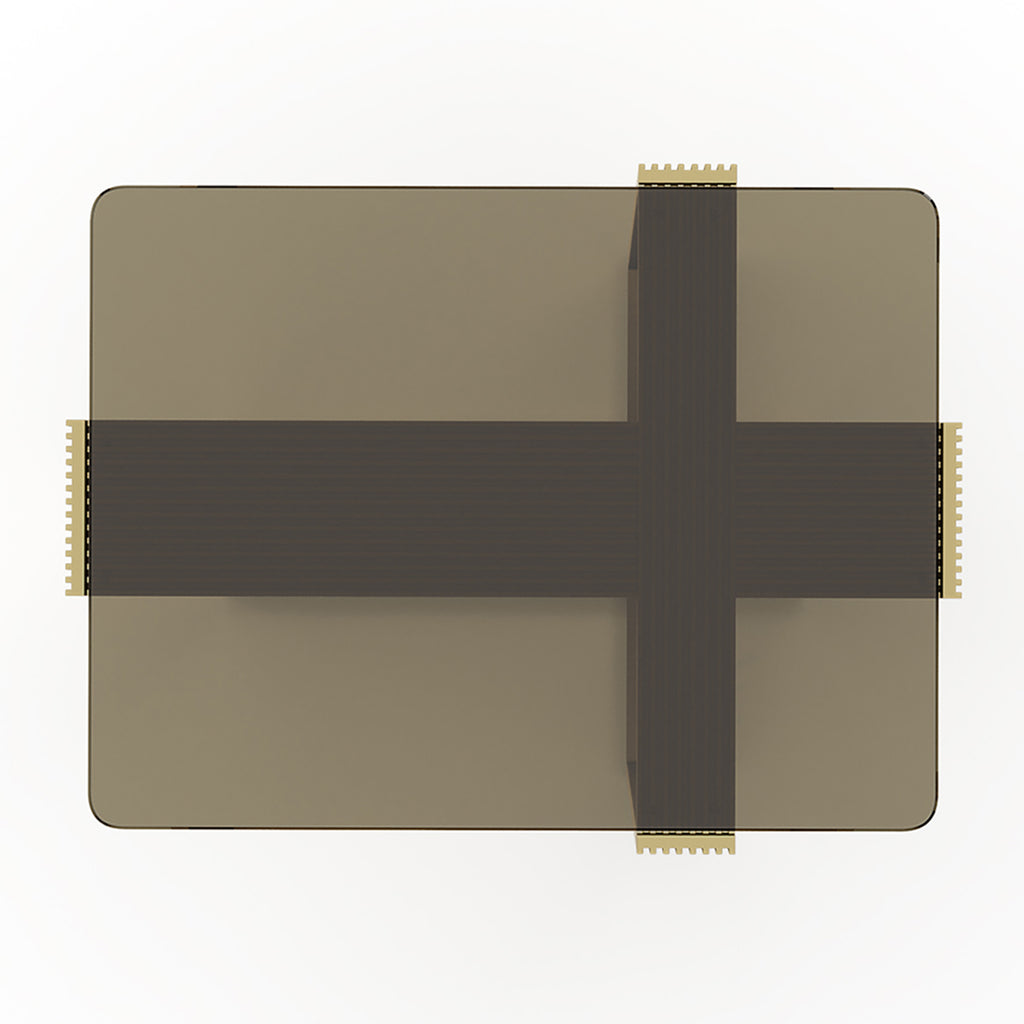 Gracefully balanced and stunningly crafted, this side table pairs a luxurious Smoked Bronze glass surface with Brushed Gold detailing, enhancing your dTcor with sophisticated style and quiet elegance.