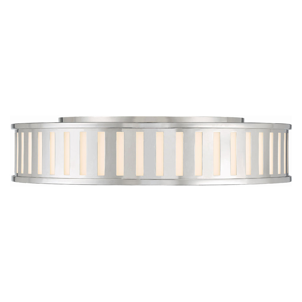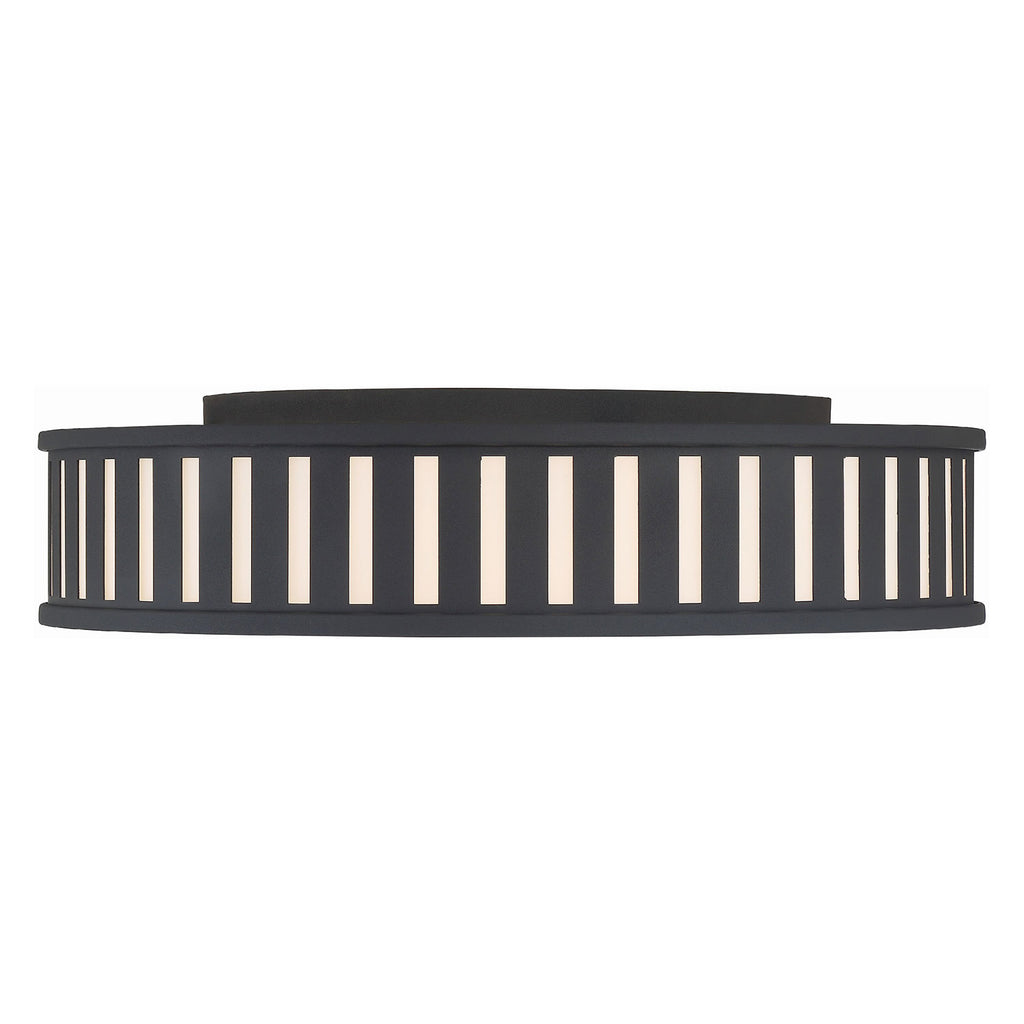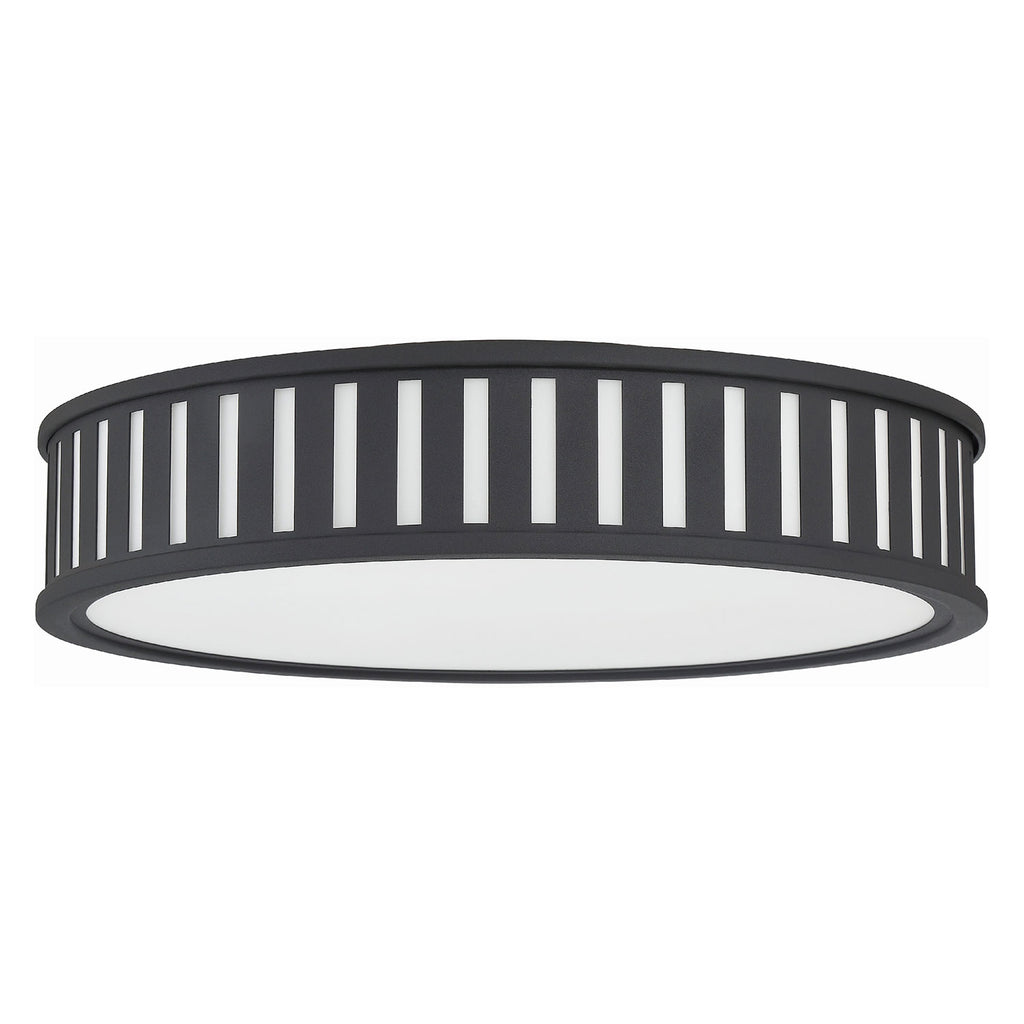 Crystorama is known for its standout lighting, which is exceptional in quality and design. From traditional all-crystal designs to transitional lighting collections, Crystorama offers styles that will match any décor and are always in fashion. The contemporary Kendal collection makes a statement with its graphic uniform pattern. Its metal frame surrounds white glass in this elegant drum-shaped ceiling mount. The high contrast of Vibrant Gold, Black Forged, or Polished Nickel against white glass is a great way to add a touch of drama to a room. Kendal collection features a versatile modern / contemporary design. A merging of design utilizing minimalist styling and clean lines that add visual appeal to a space. The rectangle cutouts in the Kendal feature the illuminated white glass. Black Forged metal finish is a deep black finish with a surface texture. This finish is ideal for industrial, rustic, farmhouse, and transitional decor settings.
