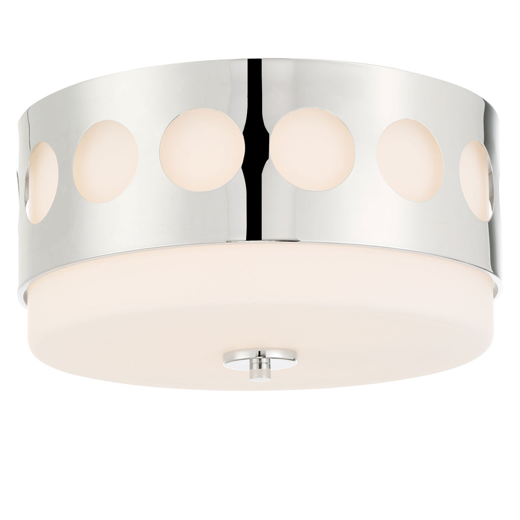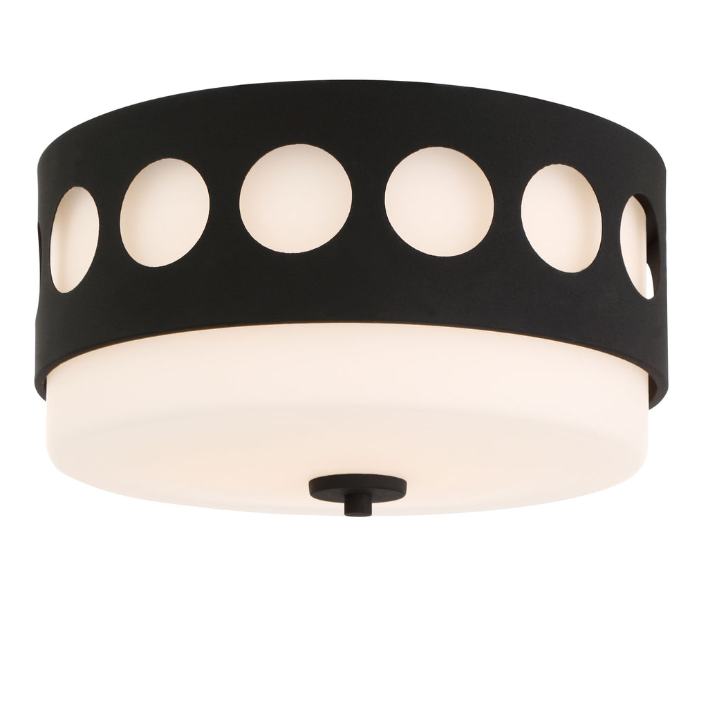 Crystorama is known for its standout lighting, which is exceptional in quality and design. From traditional all-crystal designs to transitional lighting collections, Crystorama offers styles that will match any décor and are always in fashion. The drum-shaped Kirby flush mount sends focused light to a space. A perfect choice for low ceilings, the solid white glass, and circular geometric metal overlay pattern is a stylish choice for various spaces.