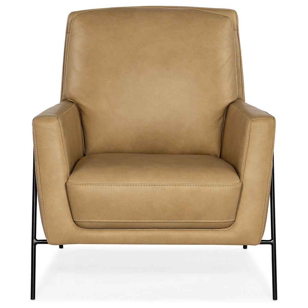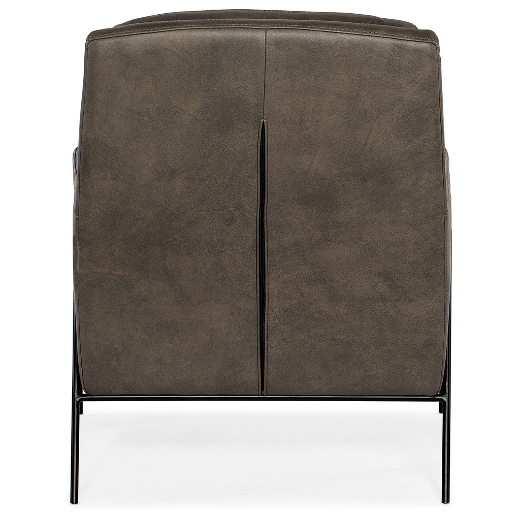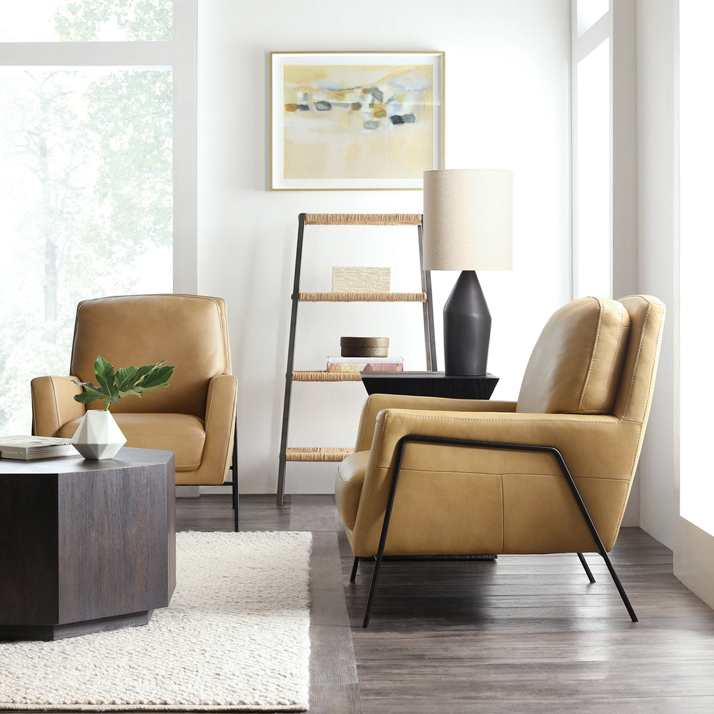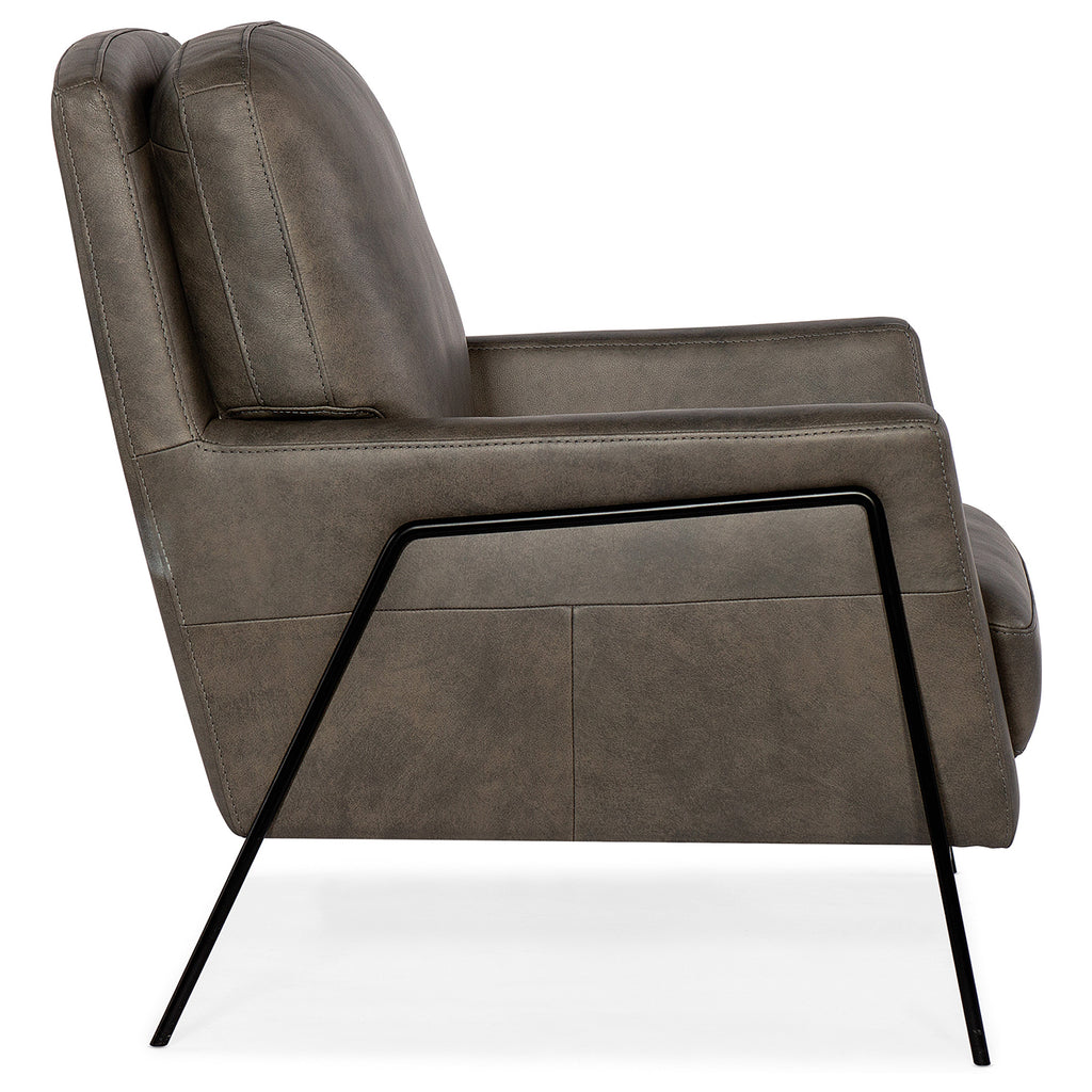 Swanky and stylish, the Amette Metal Frame Club Chair has a modern sculptured shape on a slender black metal frame. It is upholstered in the luxurious Ankur Meteor or Anker Sand top grain leather.