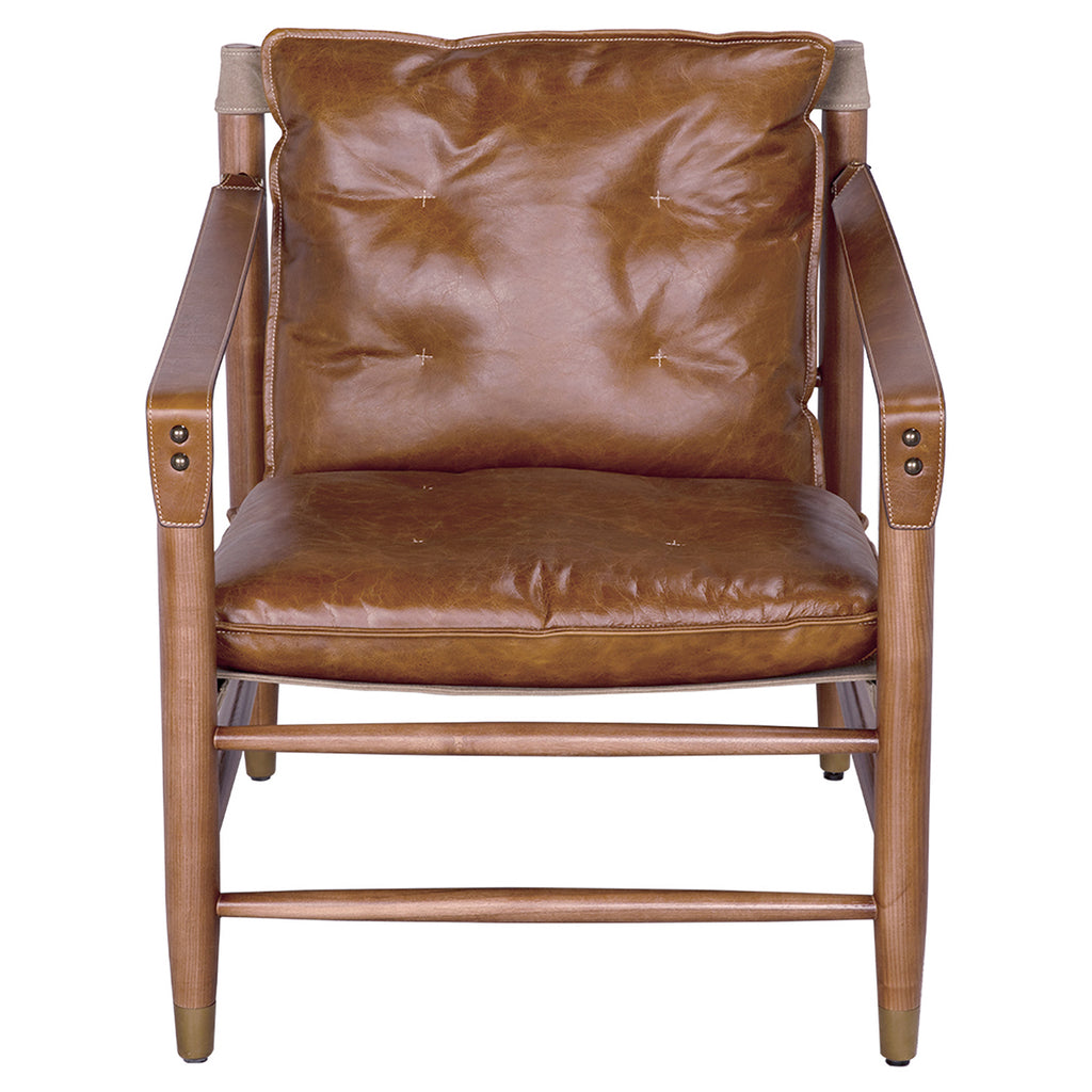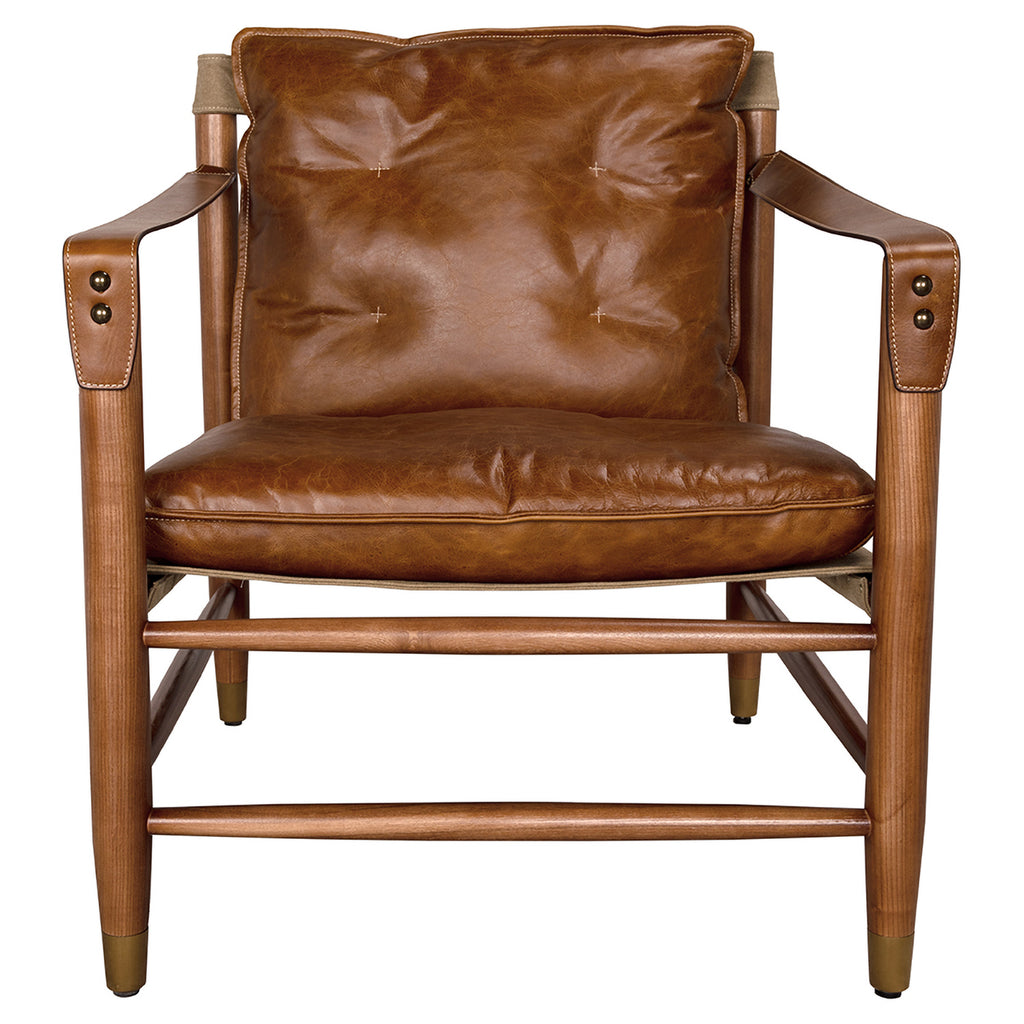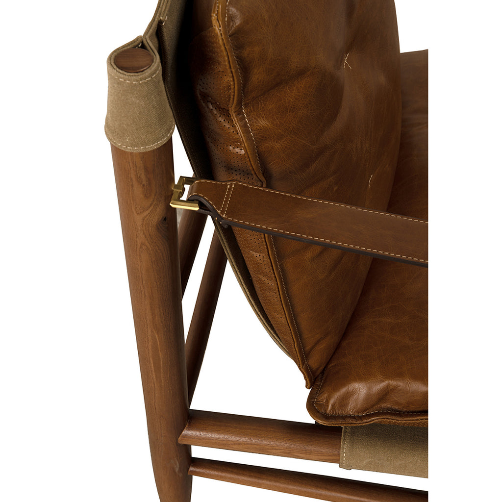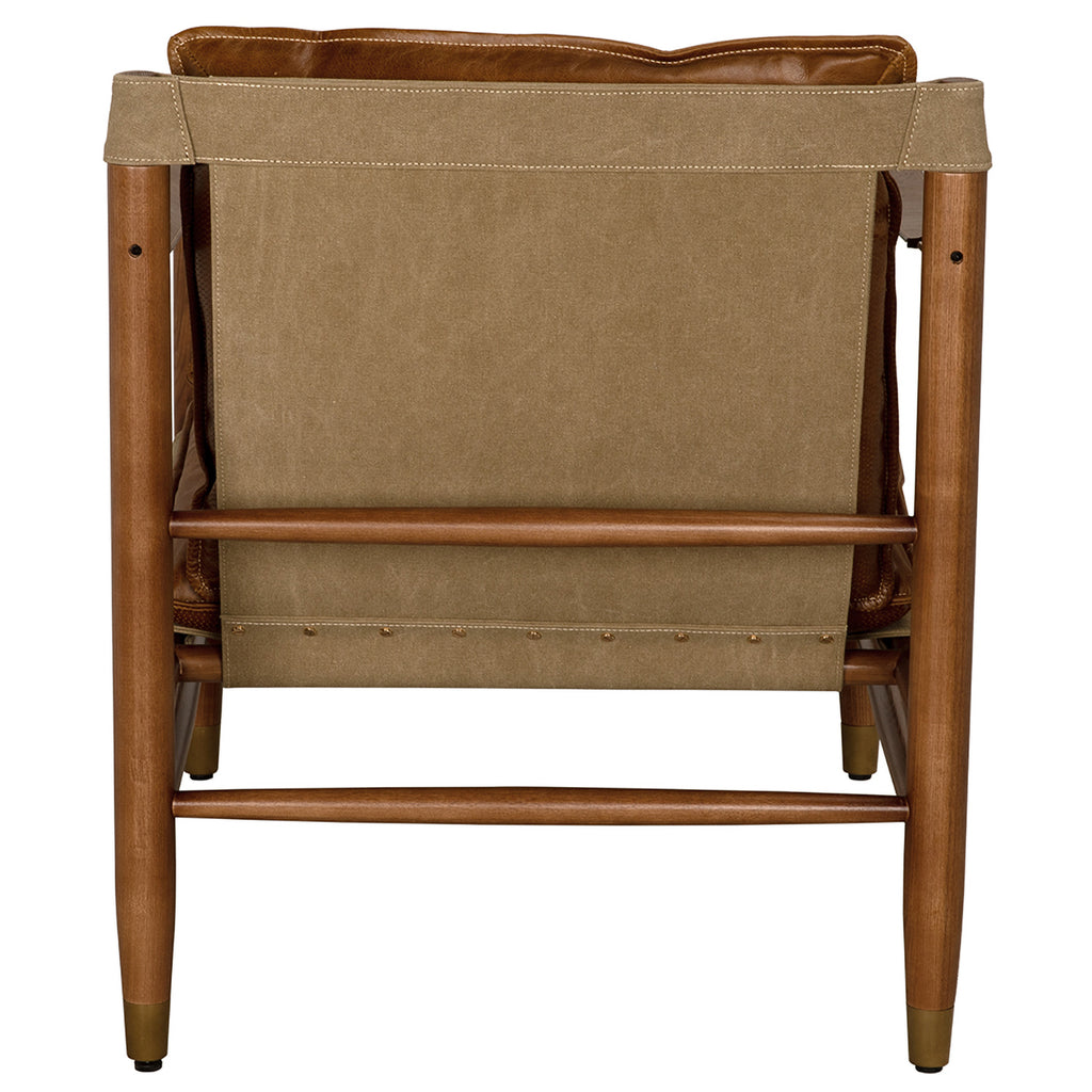 A refined blend of textures, the Luther Chair pairs warm Cuba Brown leather with durable canvas fabric, accented by brass details and a dark walnut frame.