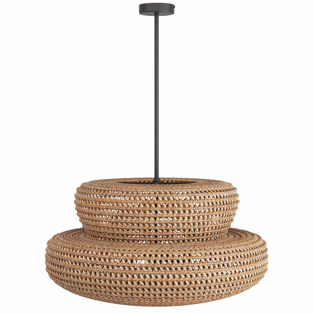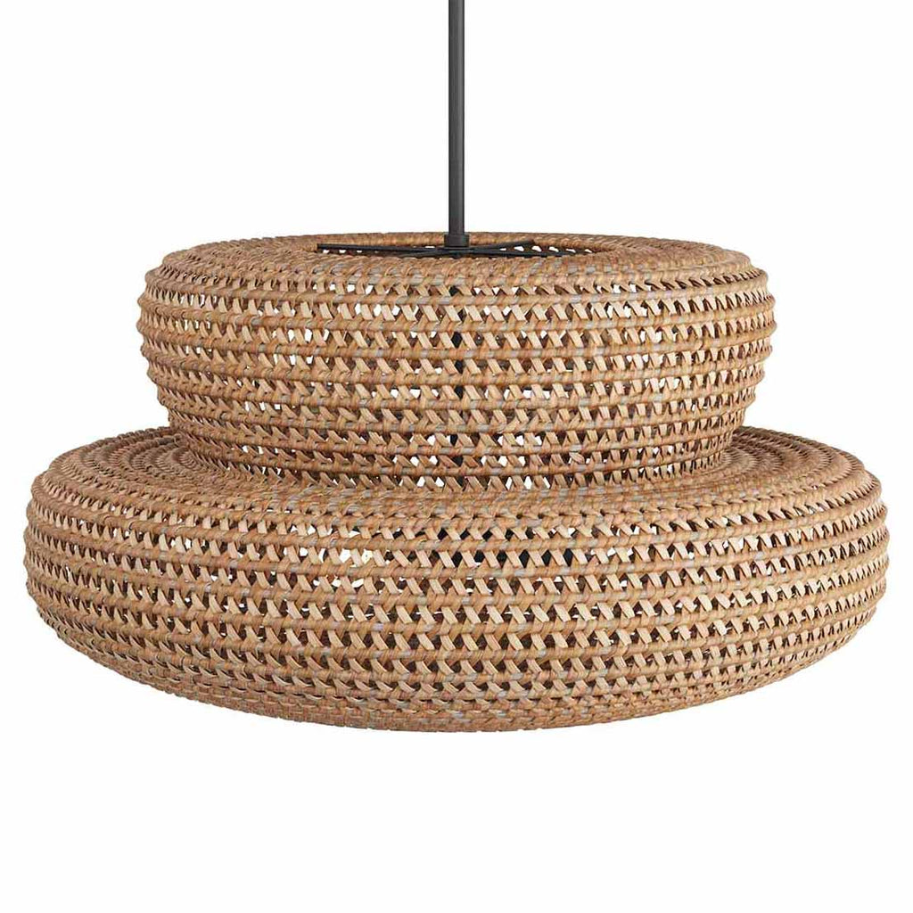 Arteriors Home lighting embodies the perfect balance of form and function, creating an ambiance that is both captivating and inviting. With an emphasis on superior craftsmanship, Arteriors ensures that their chandeliers not only illuminate the room but also make a statement. Inspired by woven fisherman’s baskets, the texture-rich Arteriors Tanya chandelier is crafted with layered woven shapes in dark, natural rattan. Its loose weave allows light to flow through, casting beautiful patterns and shadows. The artisanal accent is designed with a rich, contrasting bronzed steel pipe suspension. Finish will vary.