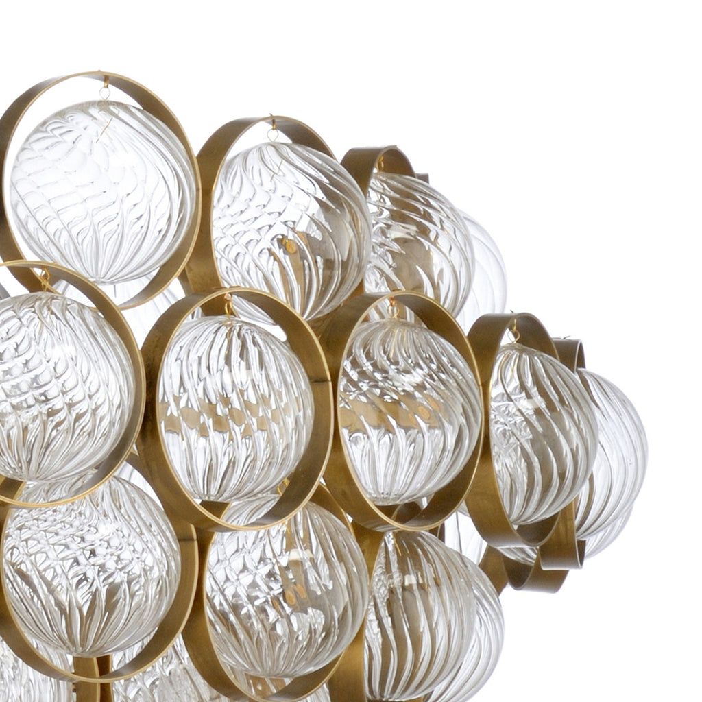 Bring a modern glow to your home with this Chelsea House Milan chandelier. Bold and elegant, this contemporary light fixture makes a modern statement.Antique Brass Finished Iron With Glass Ball Ornaments.
