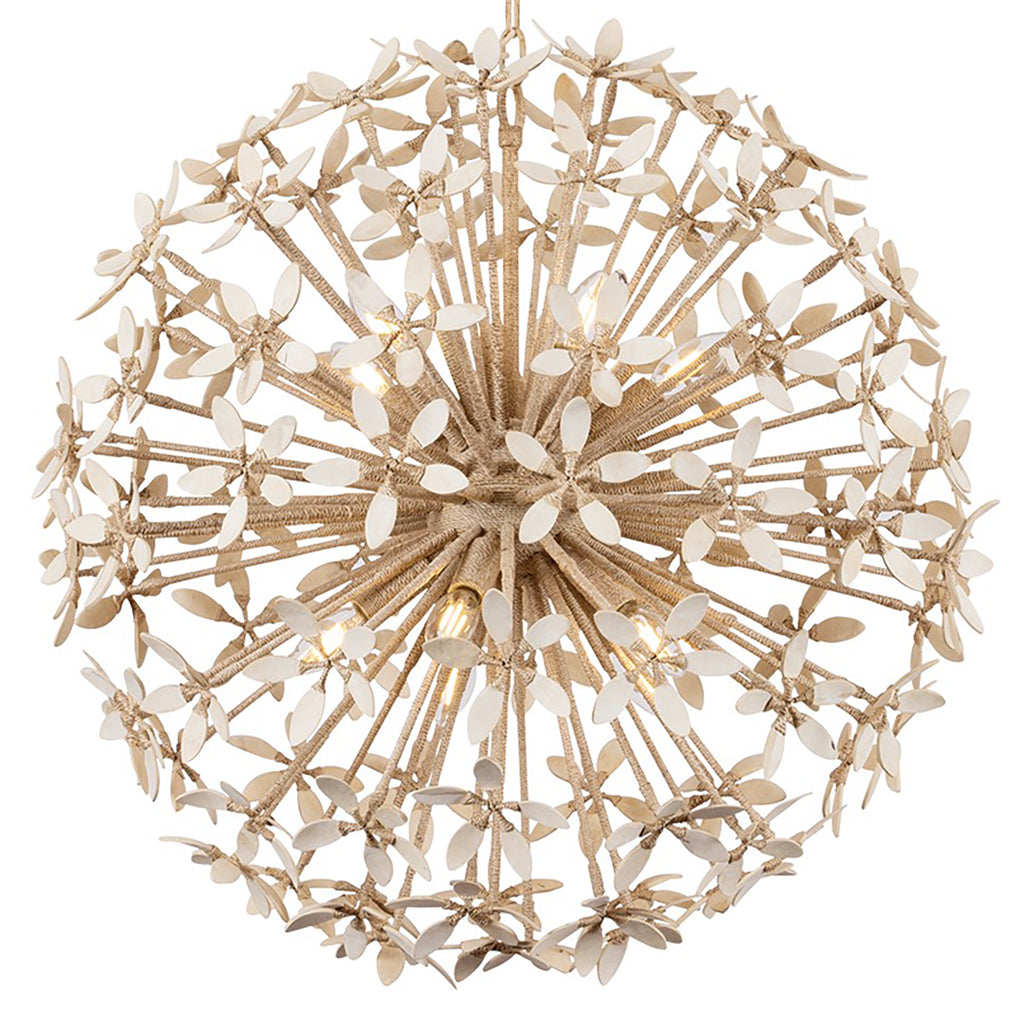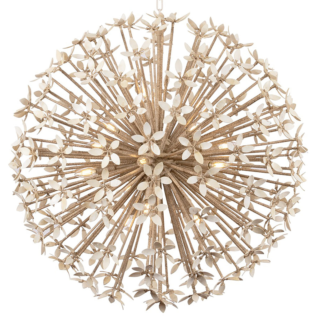 A delicate botanical motif gives this contemporary Sputnik design an organic twist, while intertwining couture artistry. Corbett Lighting Corfu’s soft, wispy ‘petals’ sprout from a central point, creating a burst of light and life. Natural materials like bleached abaca and coco shells impart a neutral tonality and airy quality. As a semi-flush mount in two sizes or a chandelier in three sizes, Corfu is a whimsical delight for the senses.