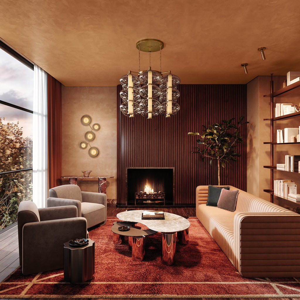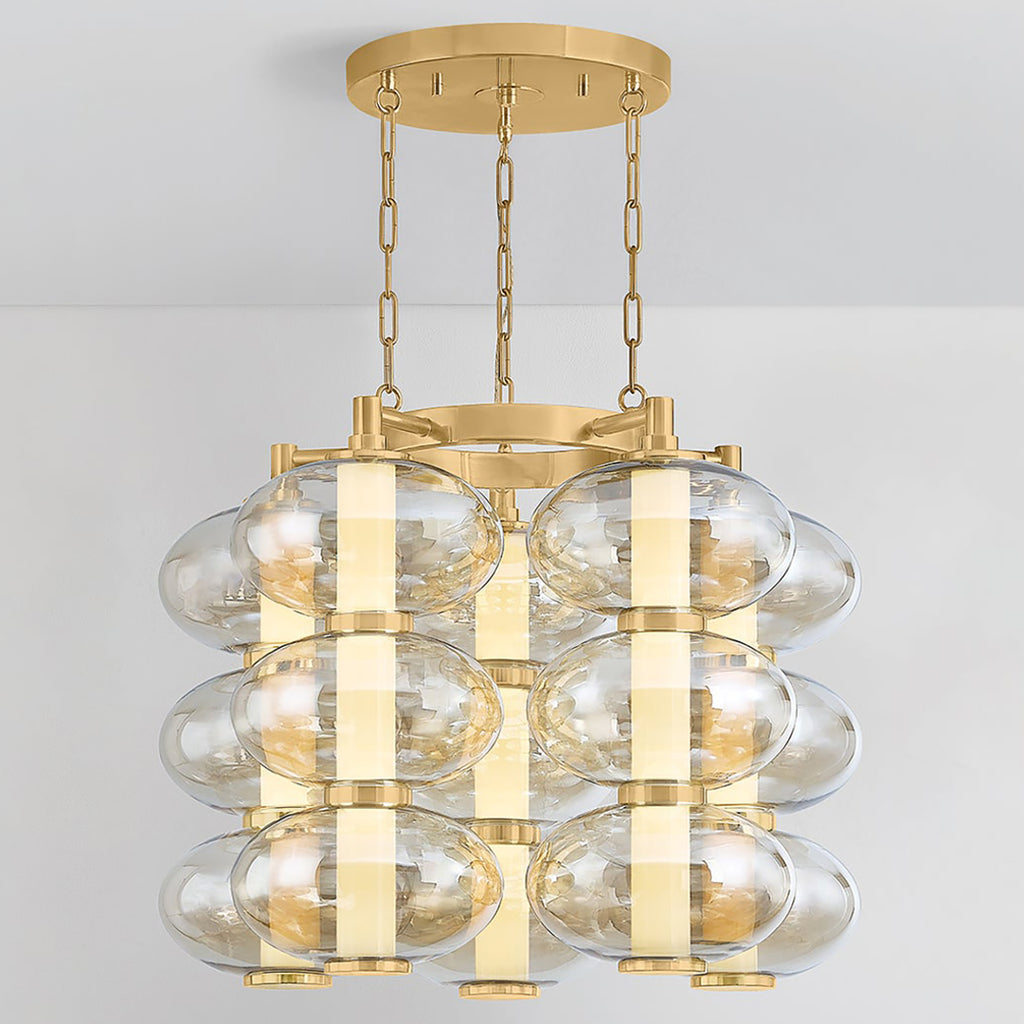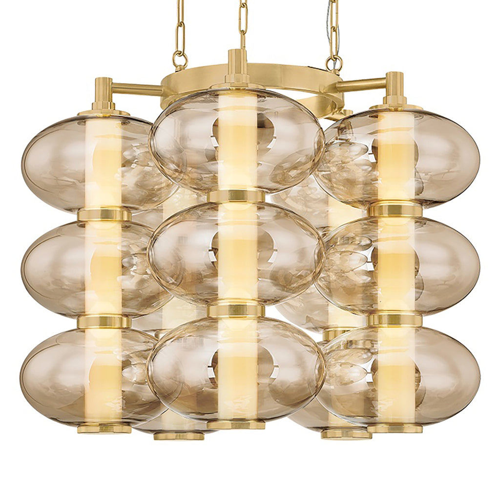 Drawing influence from the modernist era, Corbett Lighting Toulouse features sleek LED tubes surrounded by stacked oval-shaped glass orbs. The moody light bronze glass shades create bubble-like stacks, separated by Vintage Brass cuffs. Available as a sconce and a chandelier in two sizes, Toulouse is perfect for those who appreciate maximalist style with a contemporary twist.