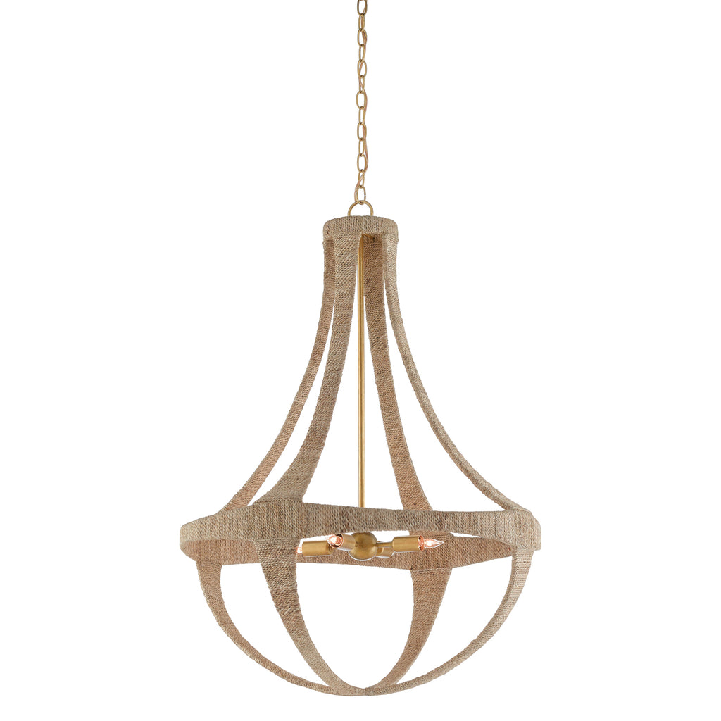 What can you do if you are relegated to the indoors when you had rather be sunning the yourself on a beach in the Mediterranean? Hang the Currey & Co Ibiza Chandelier overhead and you'll bring the panache of this storied island right into the room. Wrapped in Abaca rope, this fixture shows the skill of the Currey & Co talented artisans, as it takes great dexterity and the utmost in patience to cover a frame so seamlessly. Hardware is treated to a dark contemporary gold leaf finish to echo the warm tones in the rope.