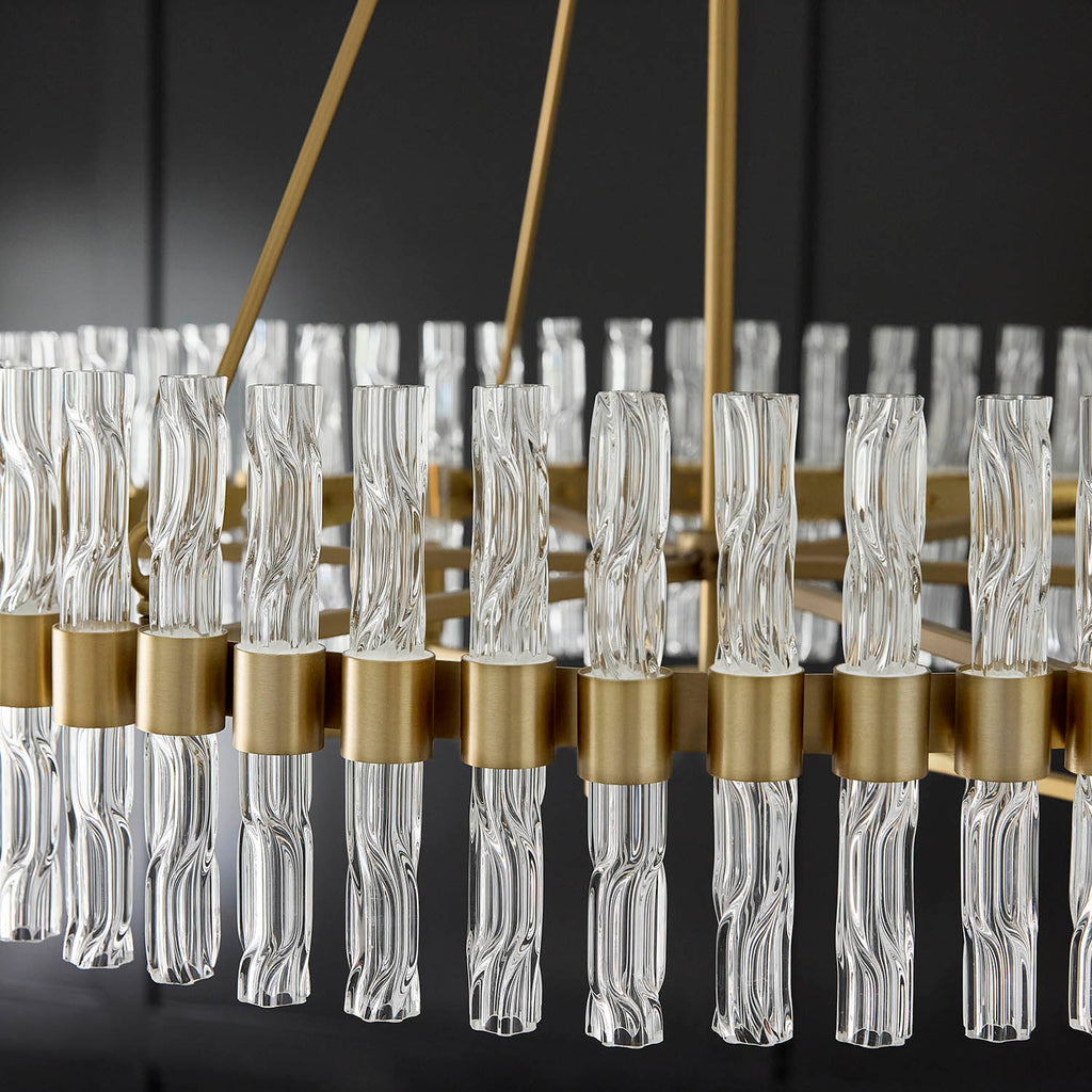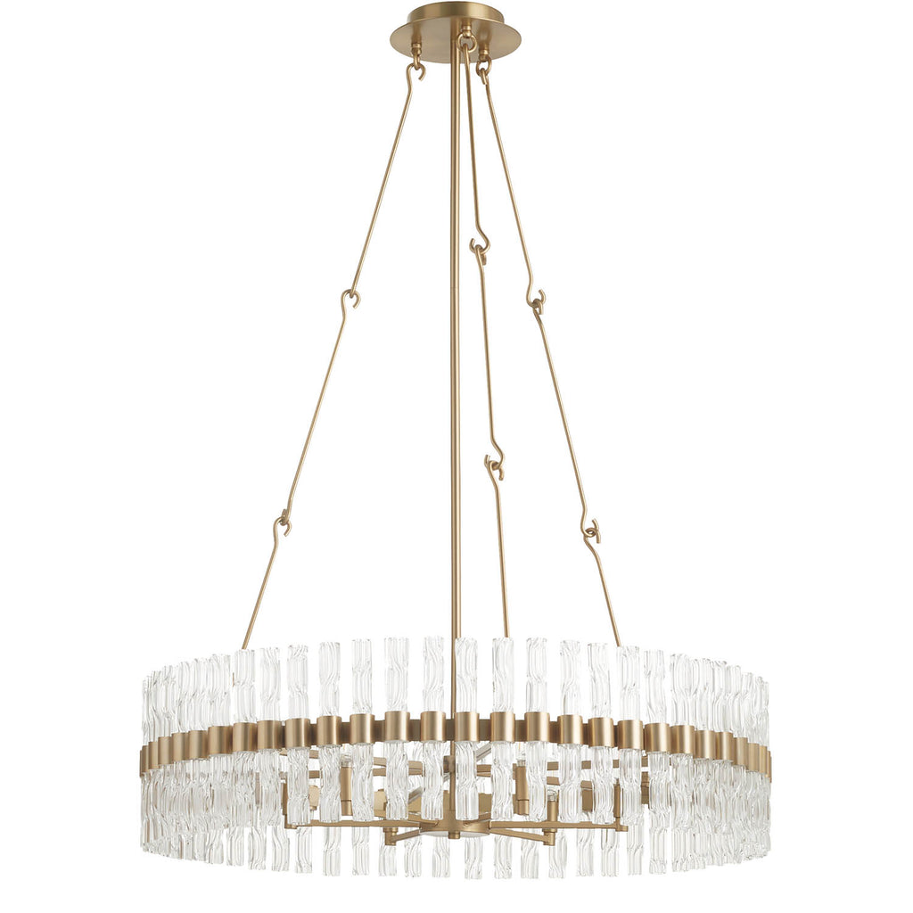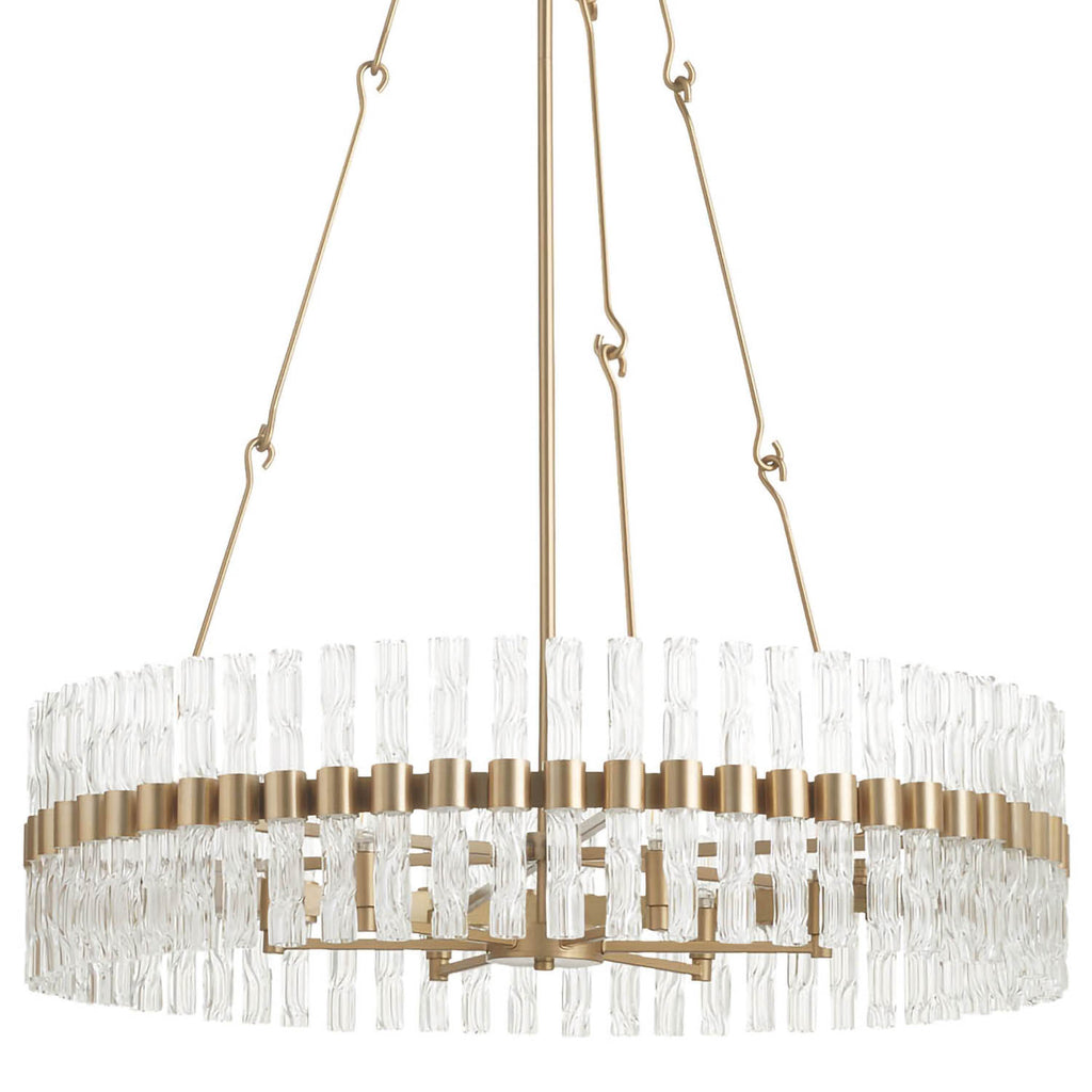 The Cristal series of premier lighting makes a powerful statement through timeless aesthetics. Expert artisans combine traditional craftsmanship with modern innovation to create sophisticated designs that transcend the ordinary. Experience the art of living with the Cristal collection by Cyan Design. The Nobel collection’s signature twisted hollow glass tubes create dynamic light play through a symphony of refraction and reflection. A large aged brass barrel frame supports 60 clear glass pieces in the 6 light chandelier.