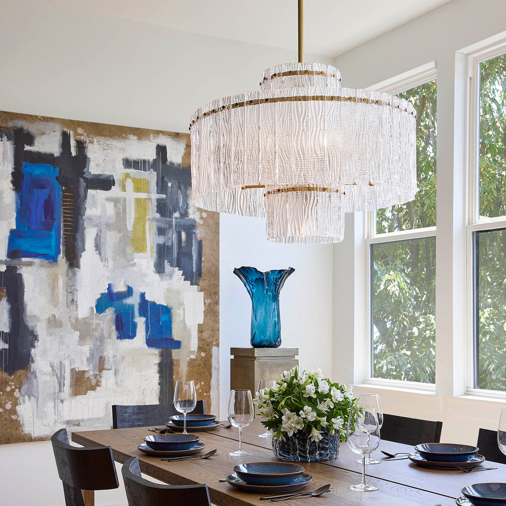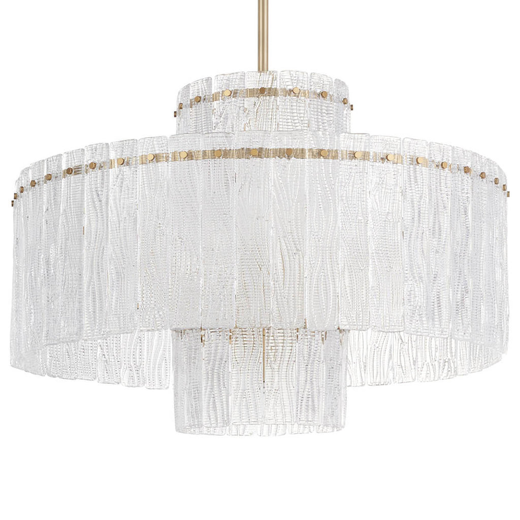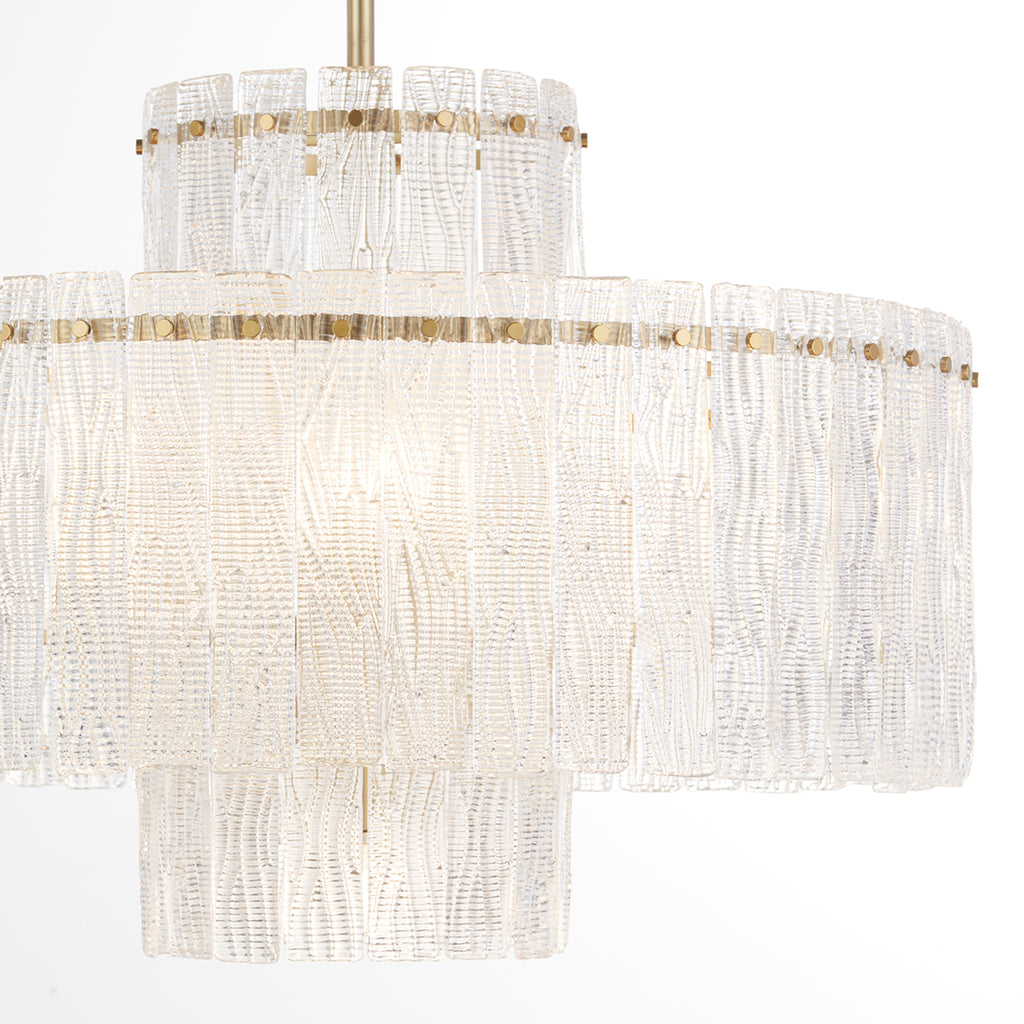 The Cristal series of premier lighting makes a powerful statement through timeless aesthetics. Expert artisans combine traditional craftsmanship with modern innovation to create sophisticated designs that transcend the ordinary. Experience the art of living with the Cristal collection by Cyan Design. Inspired by Art Deco styling, the Othello collection boasts hand-pressed textured glass panels that provide a warm, subtle glow. Aged brass arms form large and small overlapping cylinder frames that support 80 clear glass pieces in the 9 light chandelier.
