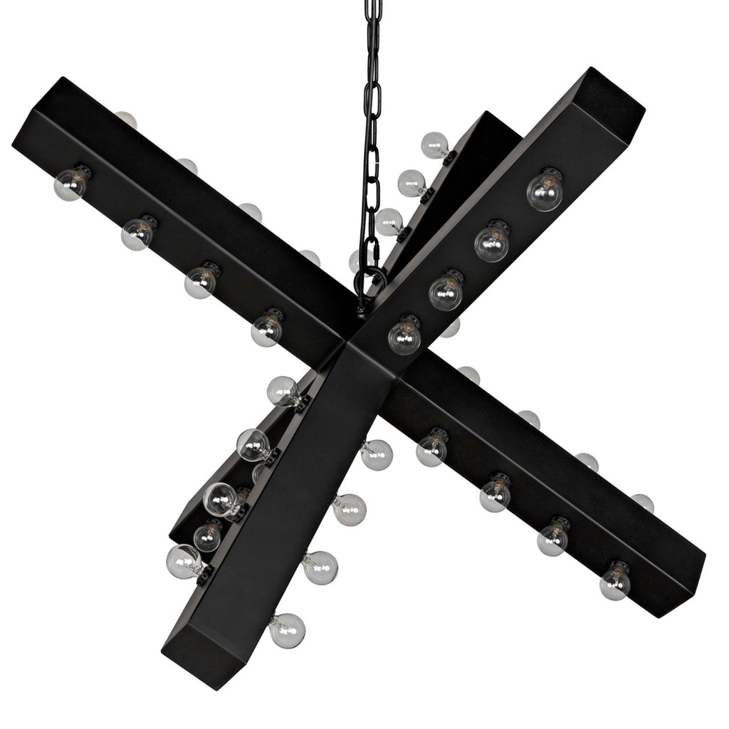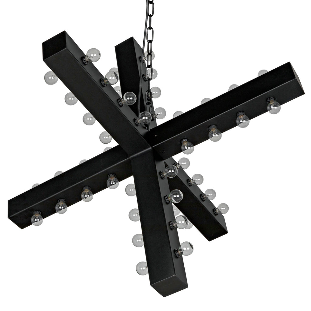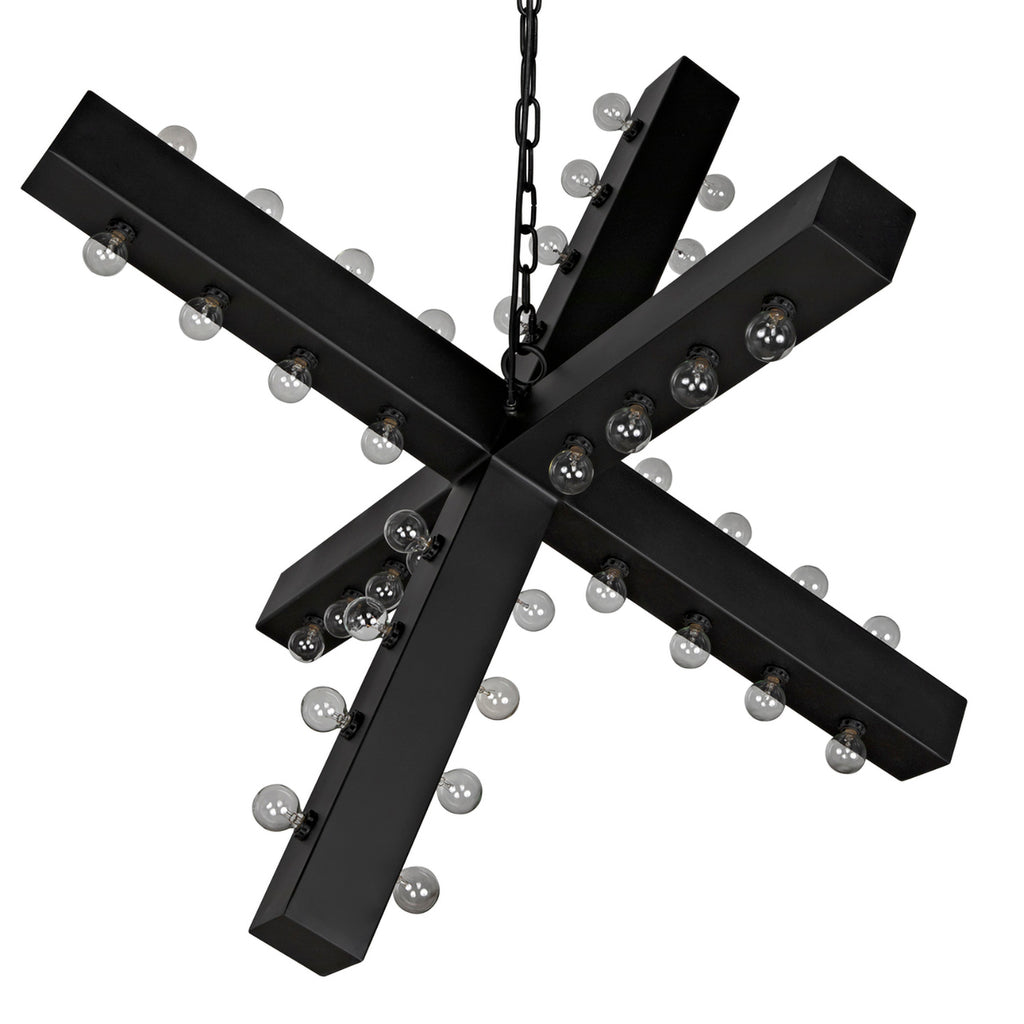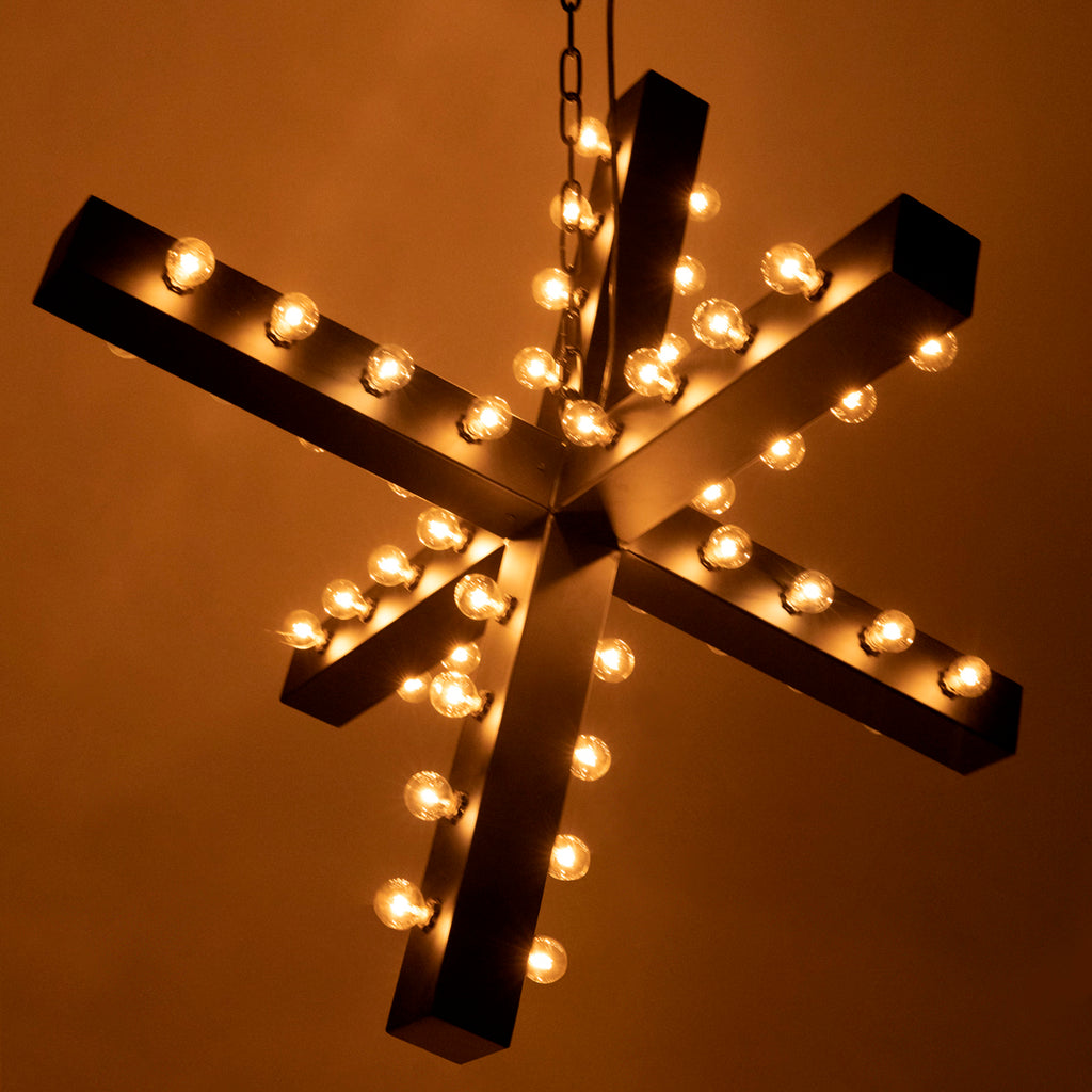 As much ceiling sculptures as chandeliers, each light in the Cruz collection is handcrafted of metal and requires multiple small bulbs.