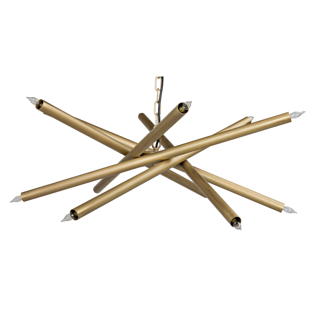 Bring bold lighting to your home with this contemporary twist on a classic chandelier. Handsome yet approachable for everyday use, this Noir light fixture adds a gorgeous glow to any space. A compelling cross between beautiful burnished brass pick-up sticks and celebratory sparklers, this metal hanging lamp has been expertly crafted and given a warm, antique brass finish. When lit, its multiple bulbs create a soft and flattering glow.