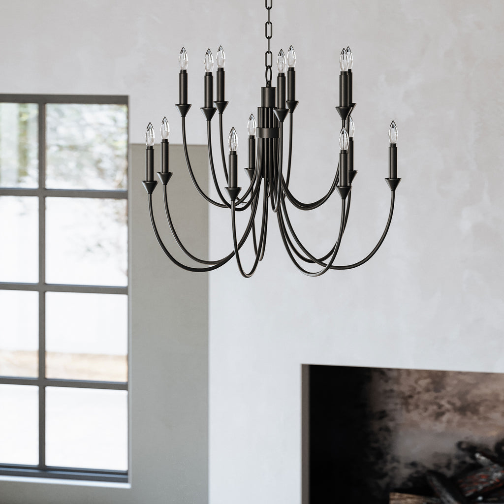 Casual, sophisticated, and little bit curious, express yourself with eclectic, artisan-made lighting by Troy. Troy chandeliers offer the final touch of drama and warmth to enhance your living or dining room, all while suspended from the ceiling. The traditional farmhouse feel and smooth arms give Cate a certain softness, while the large scale and forged iron finish make a bold statement. Cate is just as beautiful lit as it is unlit. Open and airy, the swooping arms meet in the center and each arm holds a single bulb that when combined, produce a peaceful, warm glow.