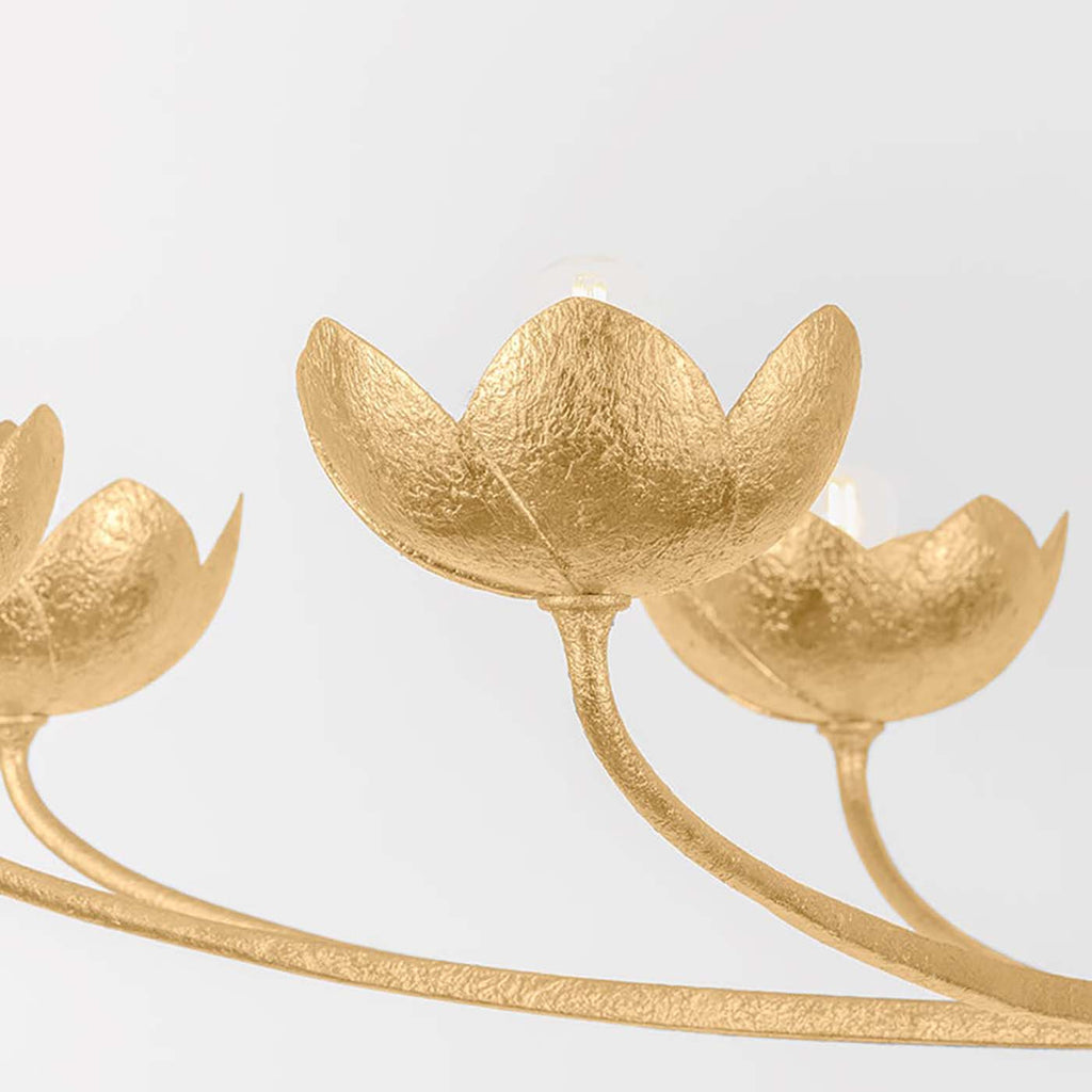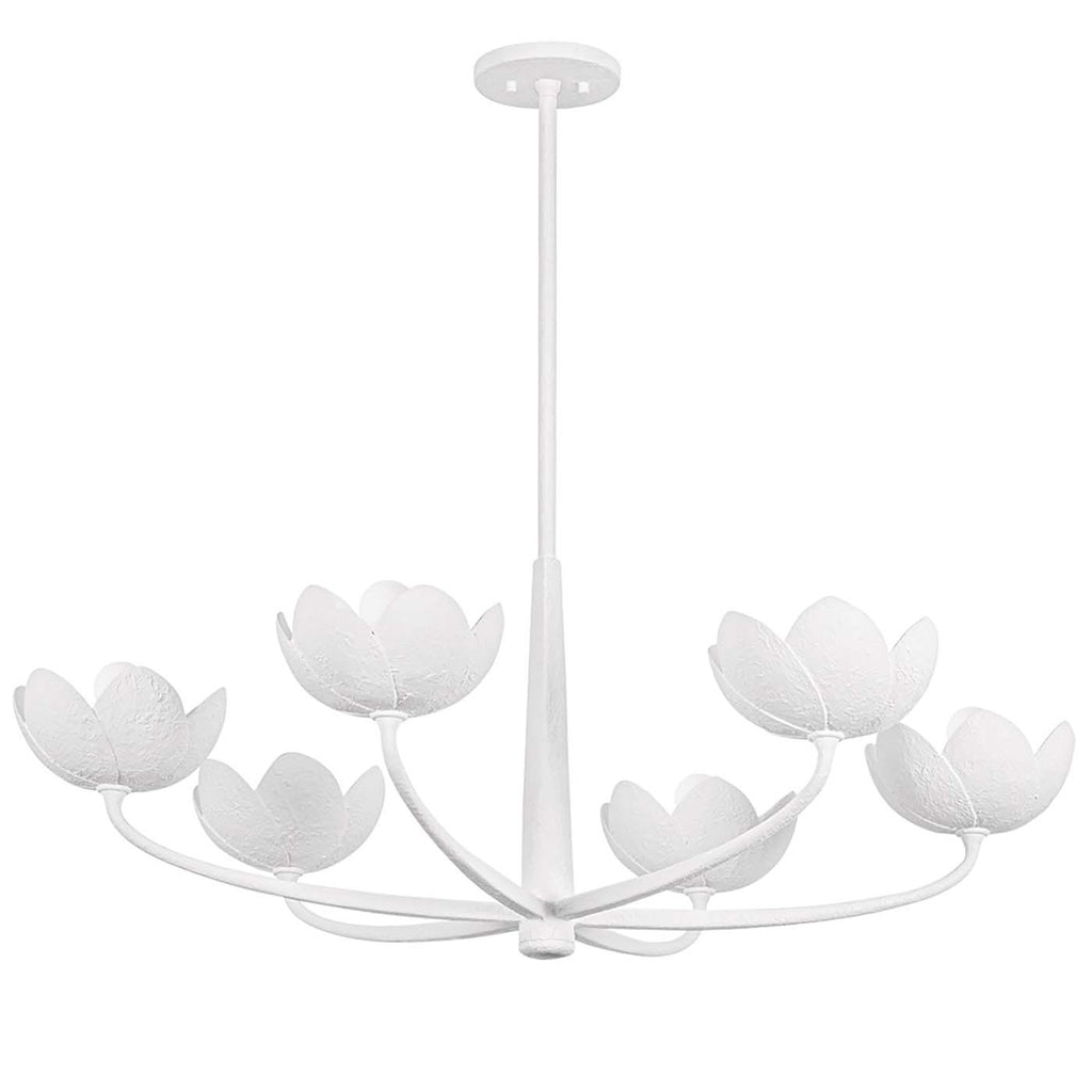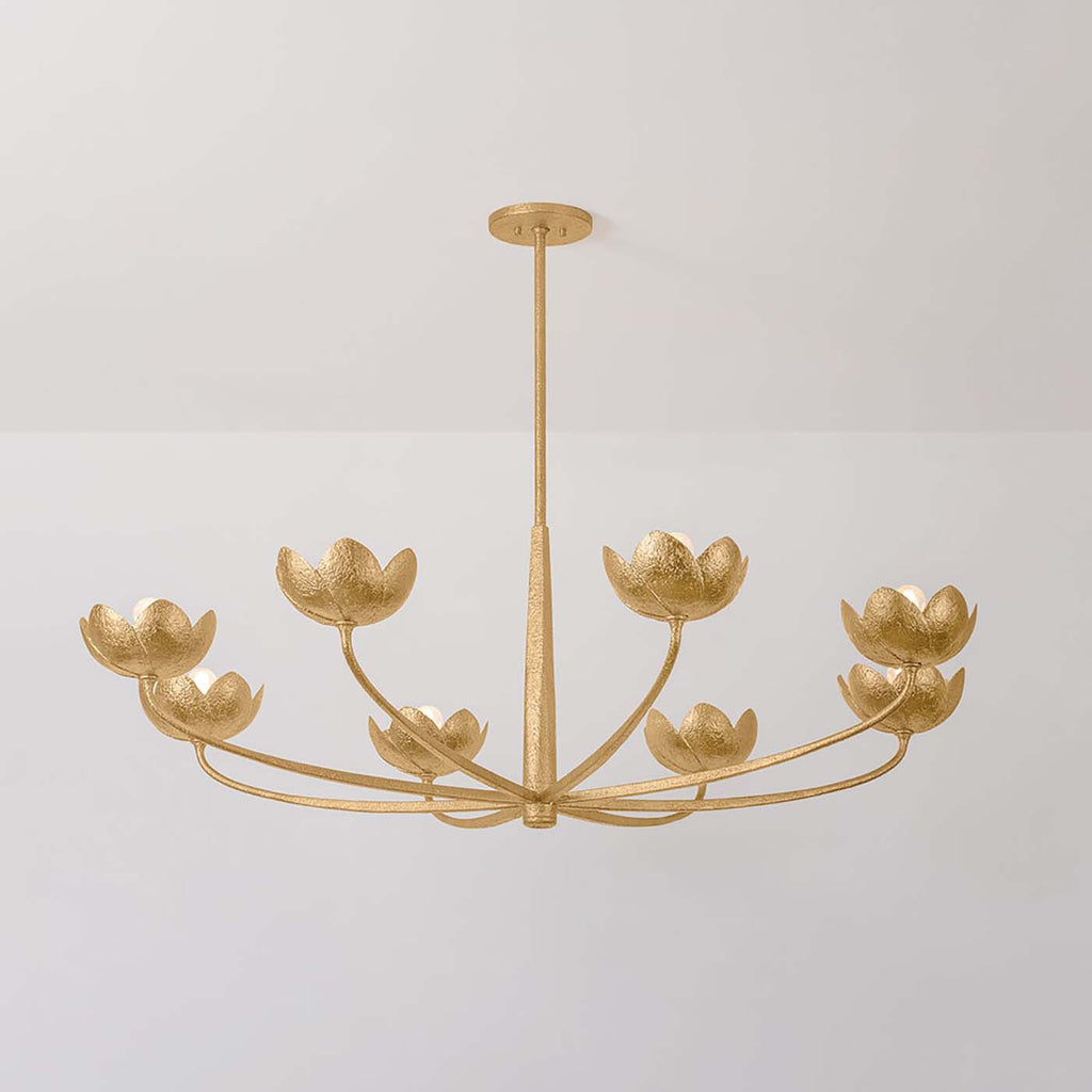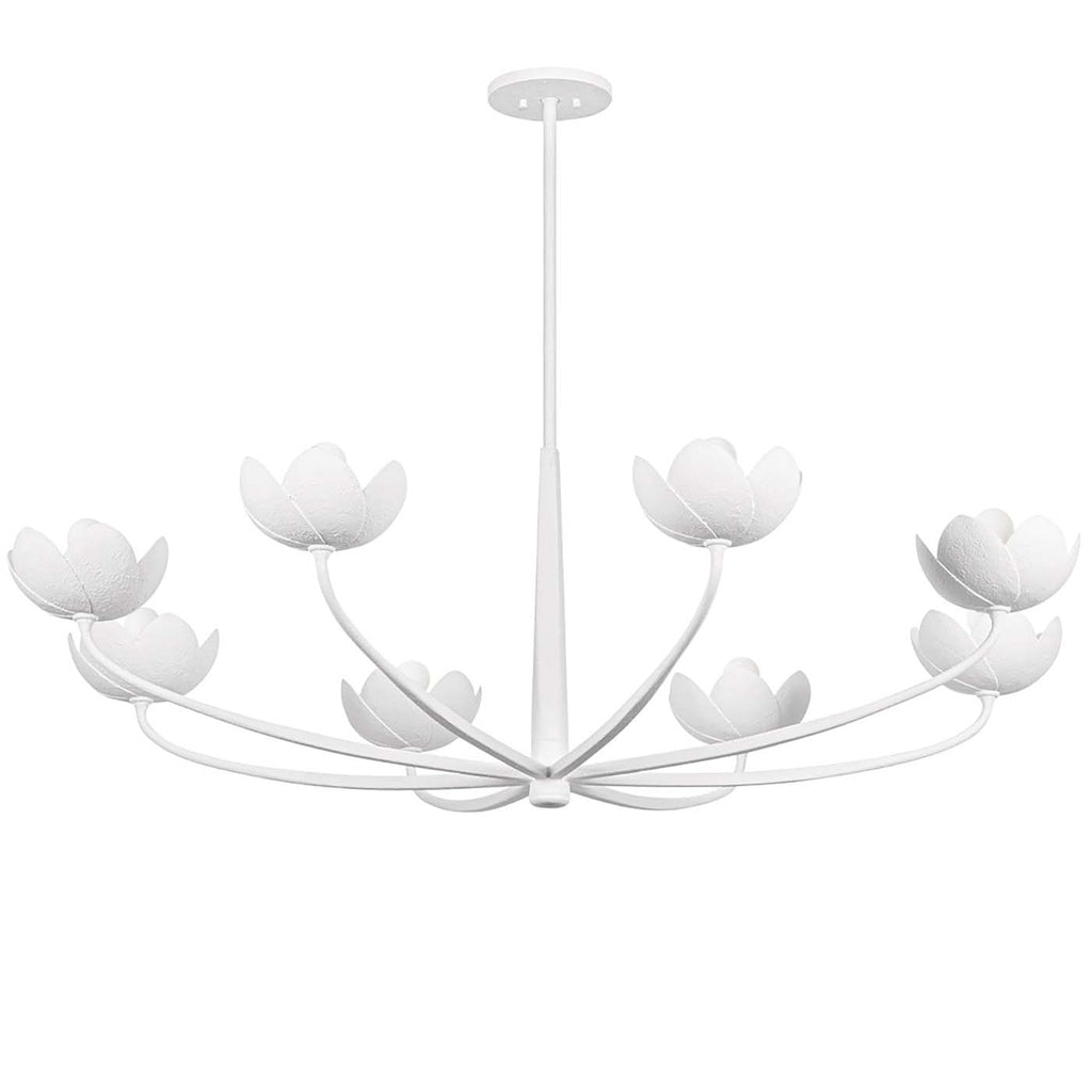 A fresh take on a botanic motif, the Arcata family features sculptural, romantic silhouettes with highly tactile, hand-worked finishes. The gentle sweeping arms transition from square to round, creating a dynamic look that complements the floral forms. Arcata is available as a 1-light sconce and 6 or 8-light chandeliers with the choice between contemporary Gesso White or a luxurious Vintage Gold Leaf finish.