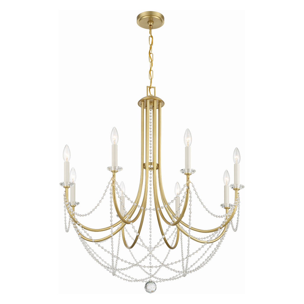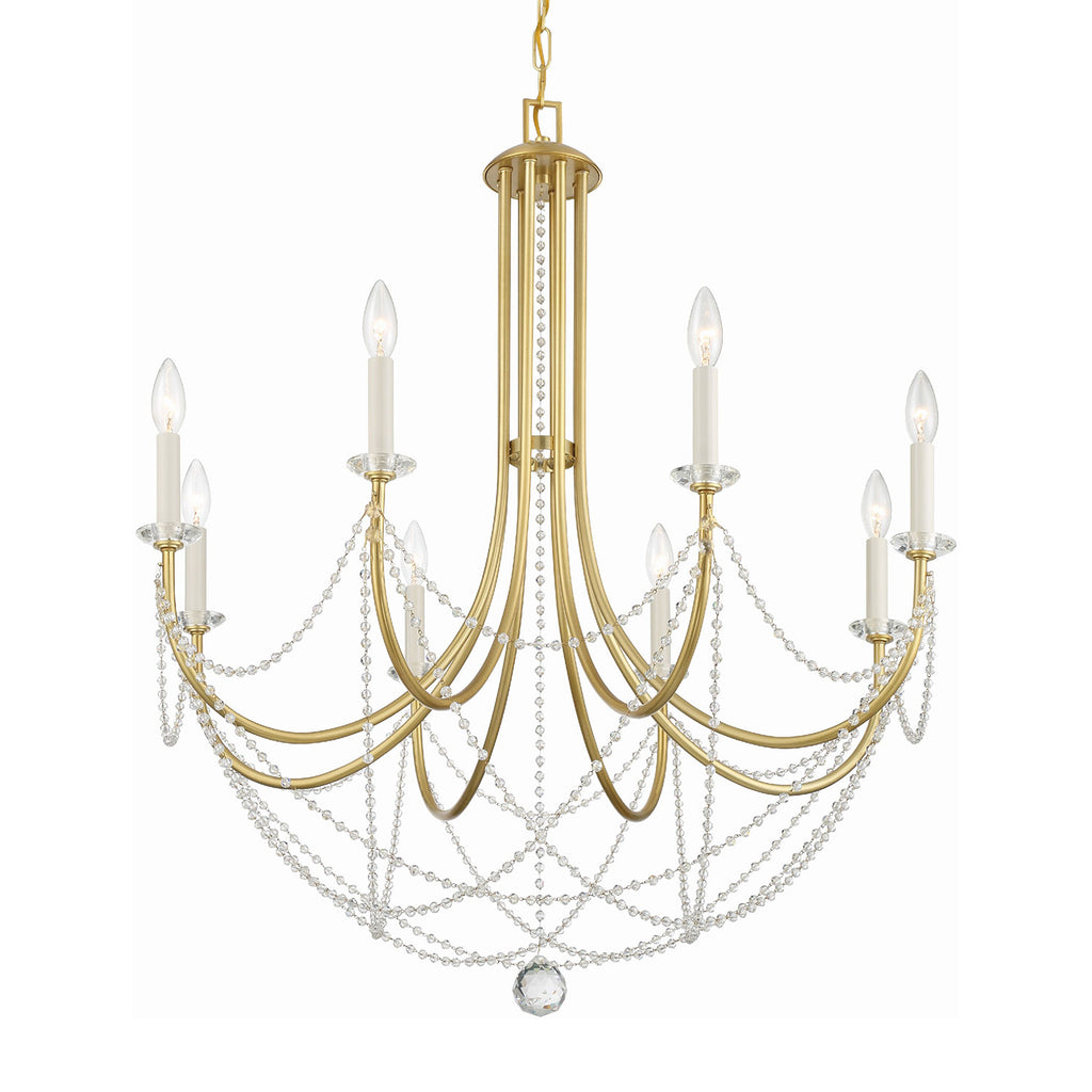Crystorama is known for its standout lighting, which is exceptional in quality and design. From traditional all-crystal designs to transitional lighting collections, Crystorama offers styles that will match any décor and are always in fashion. The Delilah chandelier makes a grand statement to your interior. Its swooping metal frame gracefully hangs crisscrossed cascading crystal beads from each metal arm. This modern-style crystal chandelier adds a rich and formal look to a room, making it the ultimate final touch. Delilah collection features a versatile transitional design. A marriage of traditional and contemporary equate a classic and timeless design that focuses on simplicity and sophistication. The light source is placed directly behind the crystals to create a nice light refraction. Aged Brass metal finish is treated to look aged and have a rich hue. This shade adds a luxurious touch to any room and is perfect for modern and contemporary settings.