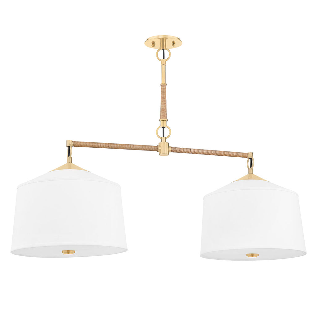 Renowned for built-to-last quality with a timeless feel, Hudson Valley offers a modern lighting collection with elegant touches, recalling vintage inspiration. Hudson Valley island lighting brightens spaces with a modern look while suspended from the kitchen ceiling, functioning as both practical and elegant. A classic shape with luxury details, the Hudson Valley White Plains island light is the perfect piece for transitional interiors. The clean, crisp white linen shade blends beautifully with the sleek solid brass metalwork and natural wrapped rattan for a look that is warm yet modern. Choose from a sconce, semi-flush, pendant and linear in an Aged Brass finish.