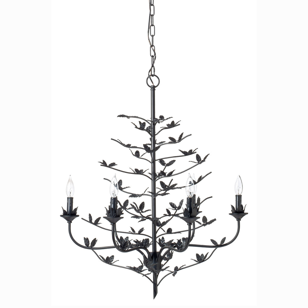 The structure of this chandelier was inspired by the natural beauty of foliage in bloom. Every branch of the black or rust iron chandelier has its own blooming petals, each crafted and attached by hand. Six iron arms hold faux dripping candlesticks blooming out of delicate iron petals. This eye-catching piece of art is expertly handcrafted and will add dramatic flair to your home's decor. The fixture is suspended from a coordinating 8-foot chain iron, and professional installation is recommended.