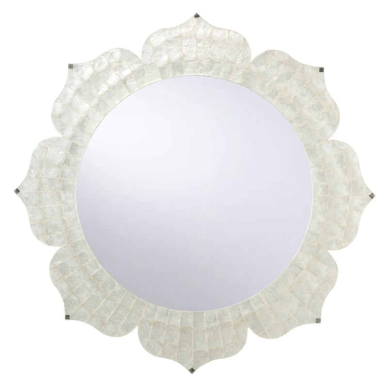 Beautifully crafted of Capiz shell in the shape of a lotus, the Lotus Flower Mirror is a unique piece that brings natural beauty indoors.