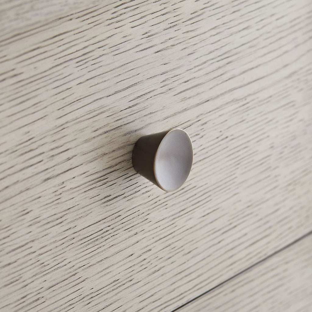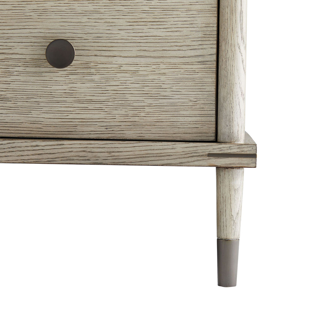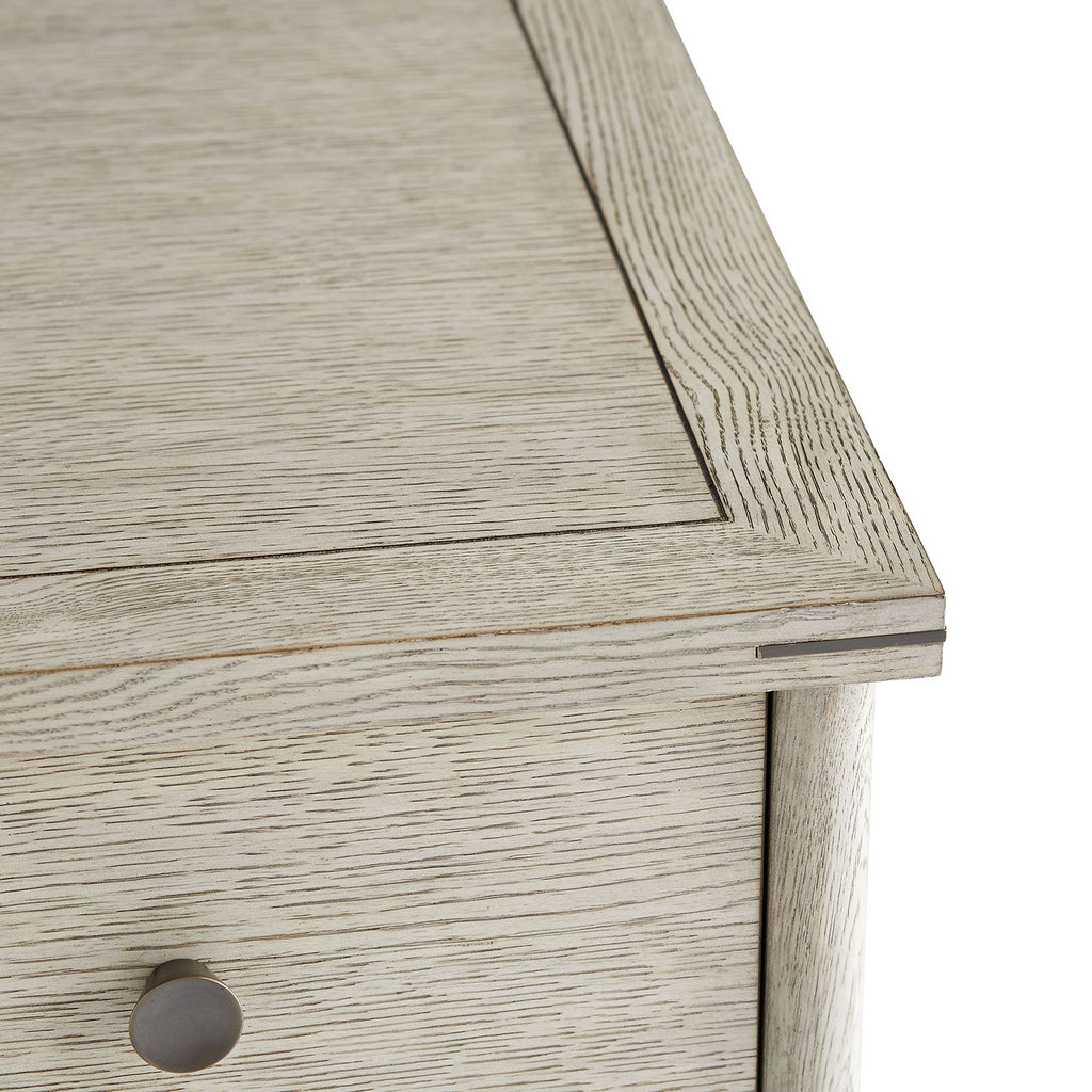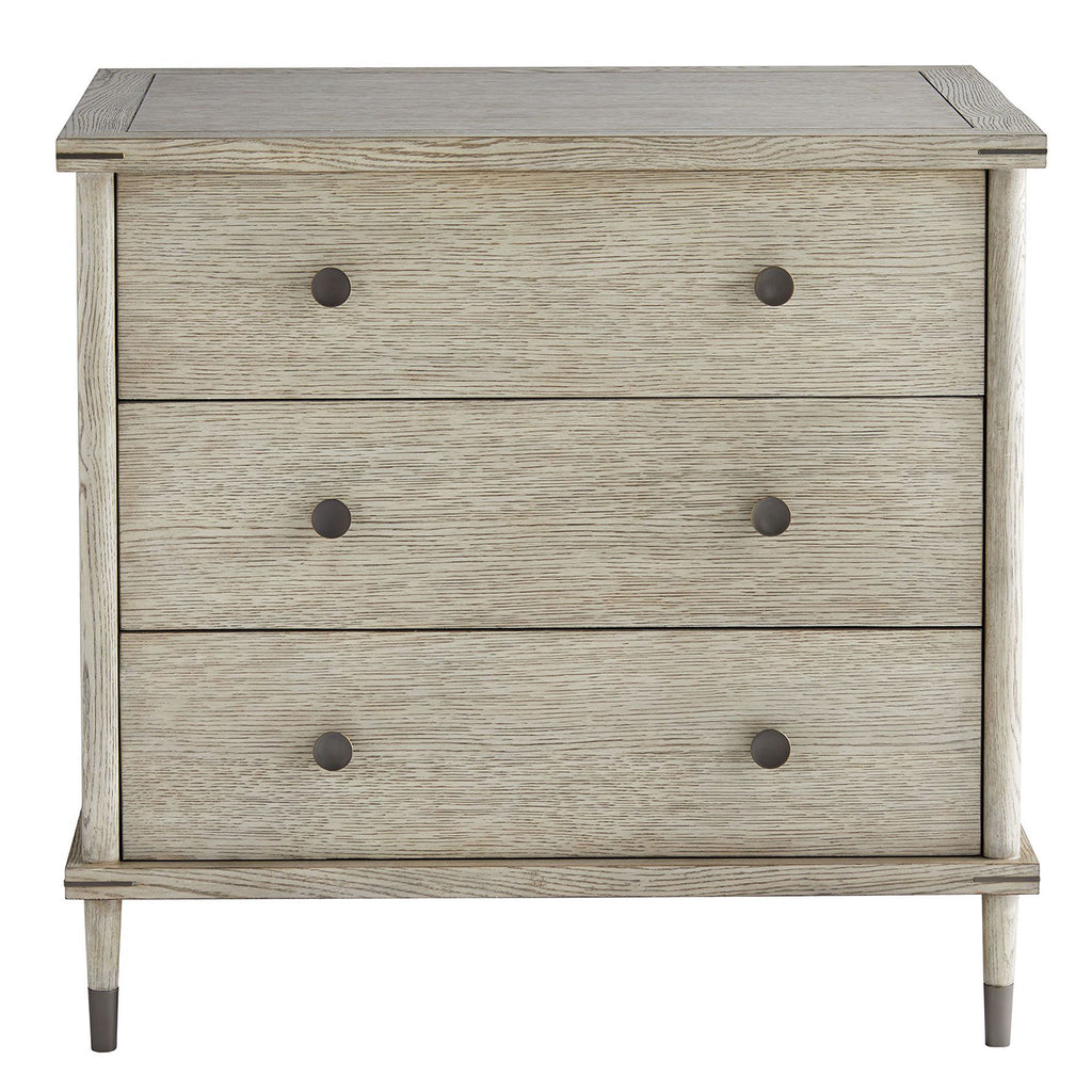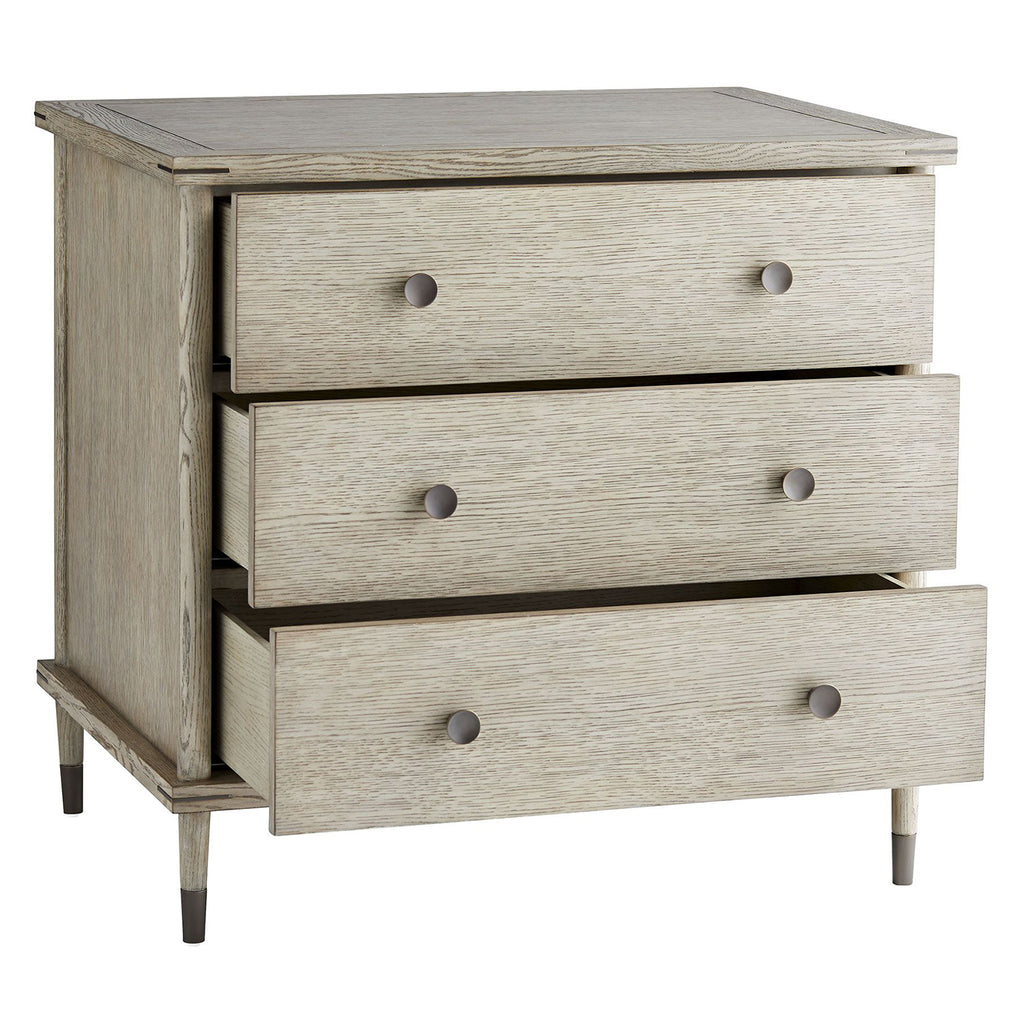 This handsome chest features a deep three-drawer construction with ample storage space. A rift-sawn oak grain foundation presents bronze brass hardware that glisten against the smoke stain and make this piece functional.