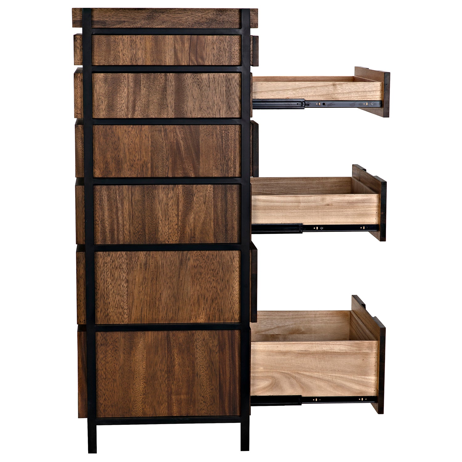 Masterfully minimalistic, this Seoul Tallboy is handcrafted with industrial steel and walnut wood; finishing this piece with a Dark Walnut and Matte black finish makes this perfect for any room.