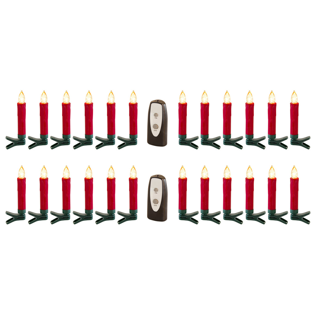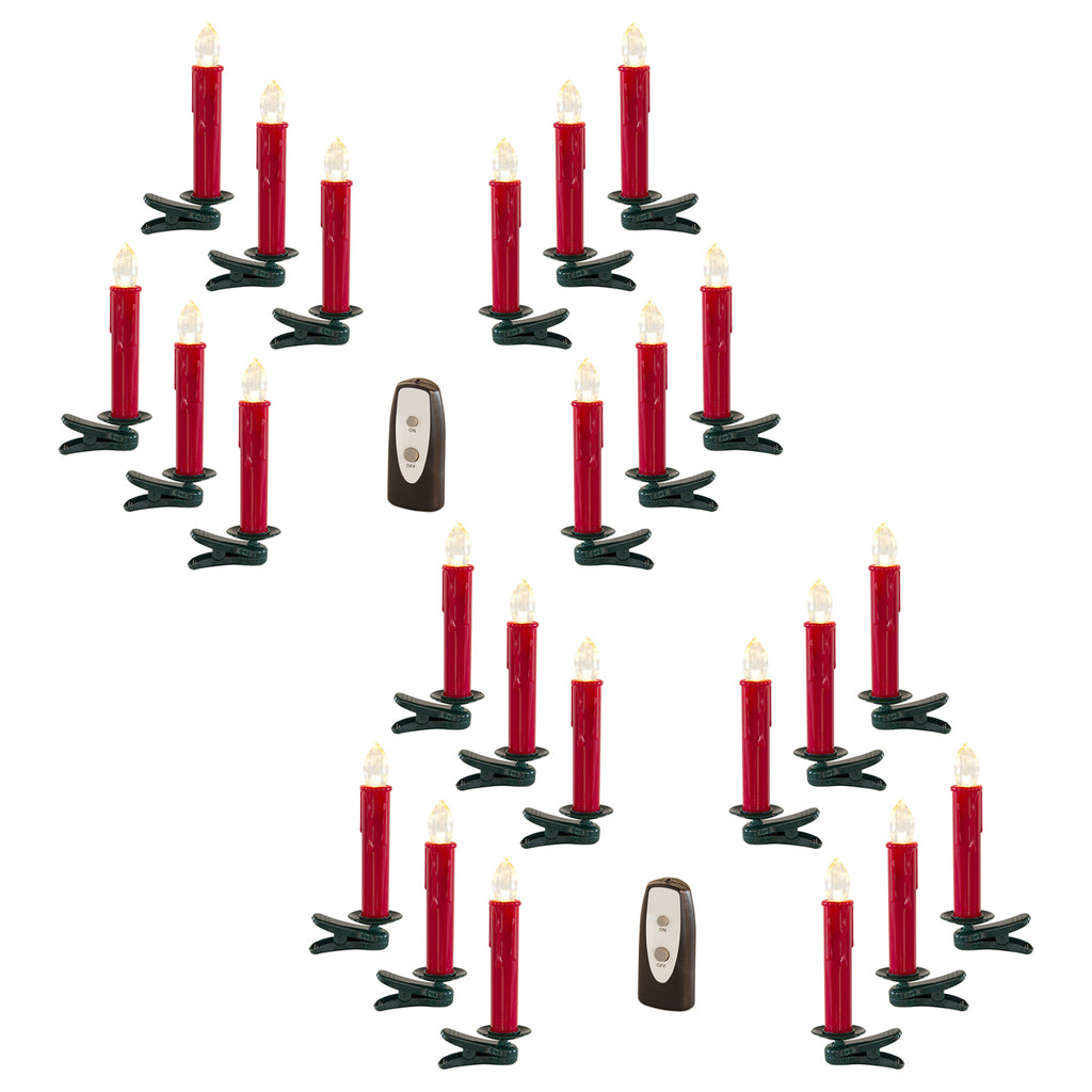 Add the beauty and ambiance flickering candles to your home with this stunning set of Red LED Clip-on Taper Candles. It has the appearance and texture of a real candle, but does not lend to the burnt smell and hazards involved with an open flame. The clip-on feature makes them the perfect addition to your holiday Christmas tree. This set features a remote control with a 4 and 8 hour timer function, making it the perfect, hassle-free addition to your holiday home decor.