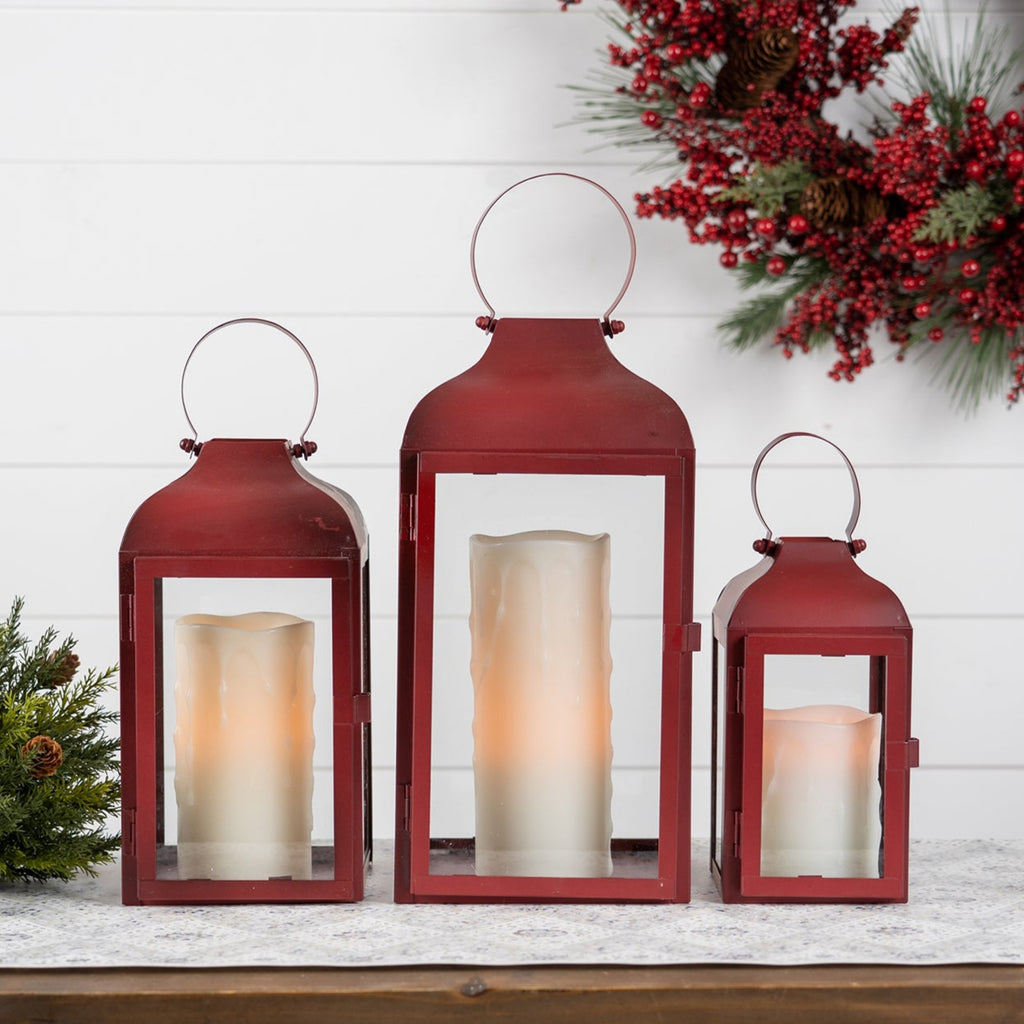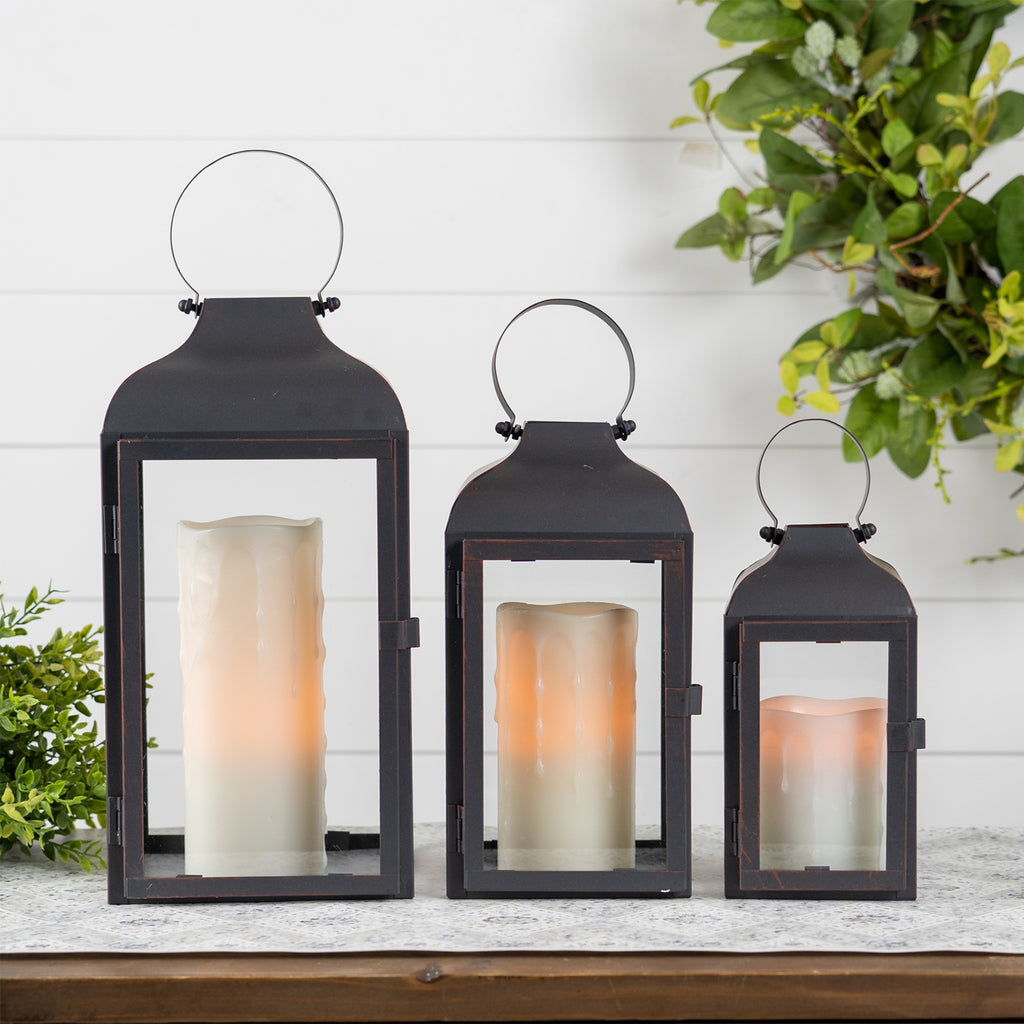 Illuminate your home with this beautiful set of Iron Metal Lanterns. The rustic painted finish paired with the modern design is the perfect combination to create a stunning display. Great for both every day and seasonal decor, just add a real wax or LED candle to complete the look.
