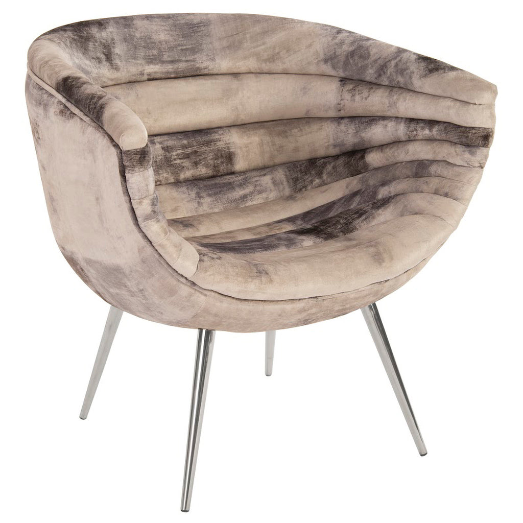 With its mod profile, the Nouveau Mist Gray Club Chair is a throw-back to the swinging seventies with contemporary lines in its slim stainless-steel legs. Upholstered in a mist gray fabric with its spray of pale and dark patterns, the chair is comfortable to sit in thanks to the way it cups the body and the rolled back that offers maximum padding.