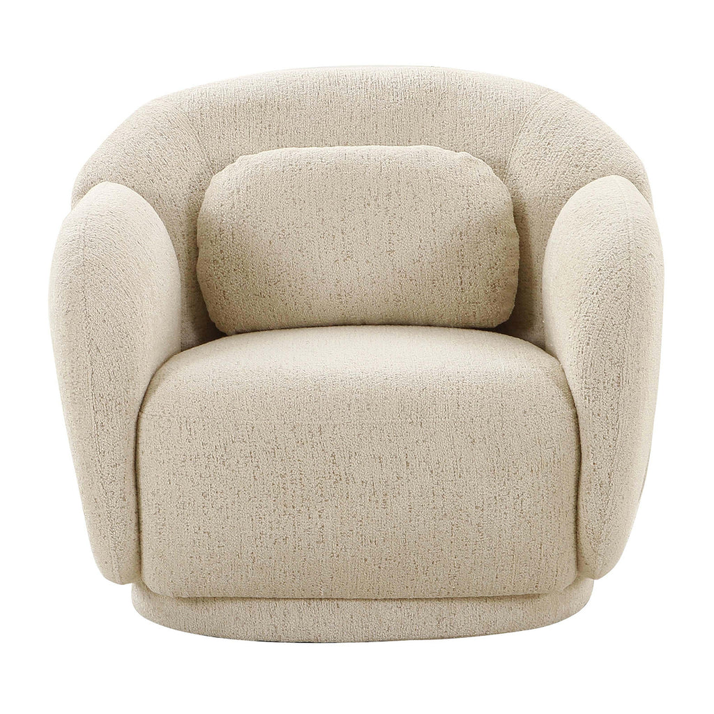Introducing Misty: It doesn't get cozier than this mid-century inspired design, topped with coordinating pill-shaped pillows and upholstered in a delicious cream boucle!